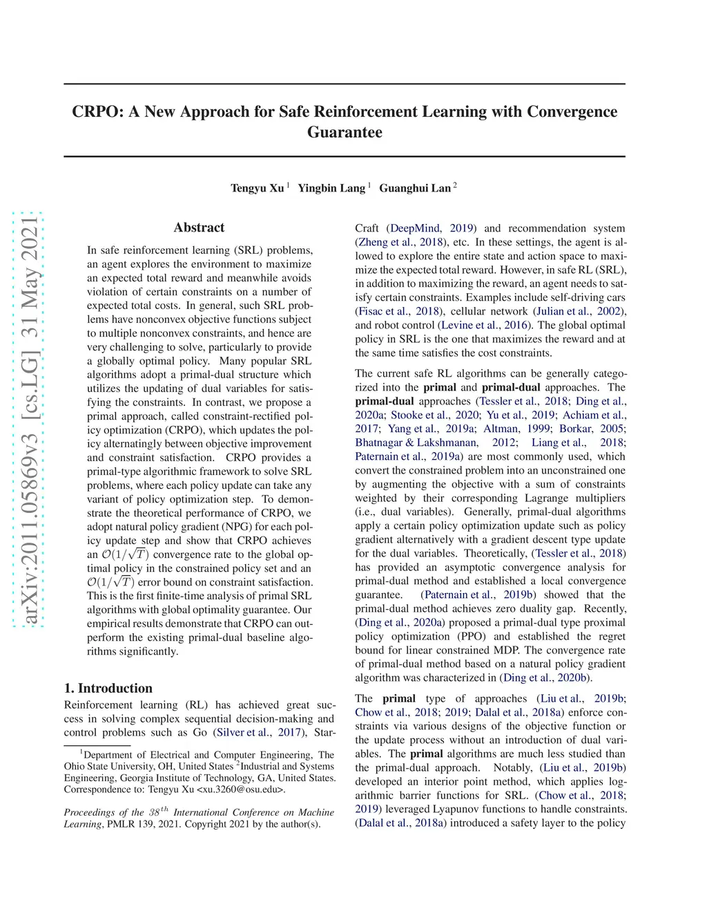 CRPO: A New Approach for Safe Reinforcement Learning with Convergence