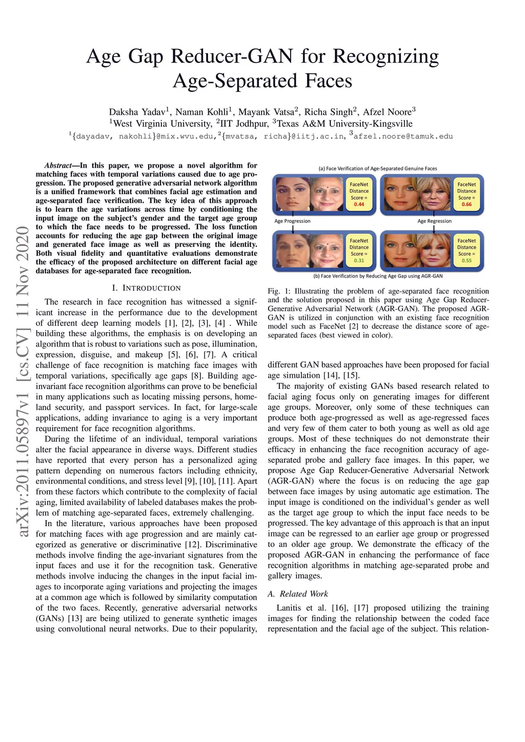 Age Gap Reducer-GAN for Recognizing Age-Separated Faces