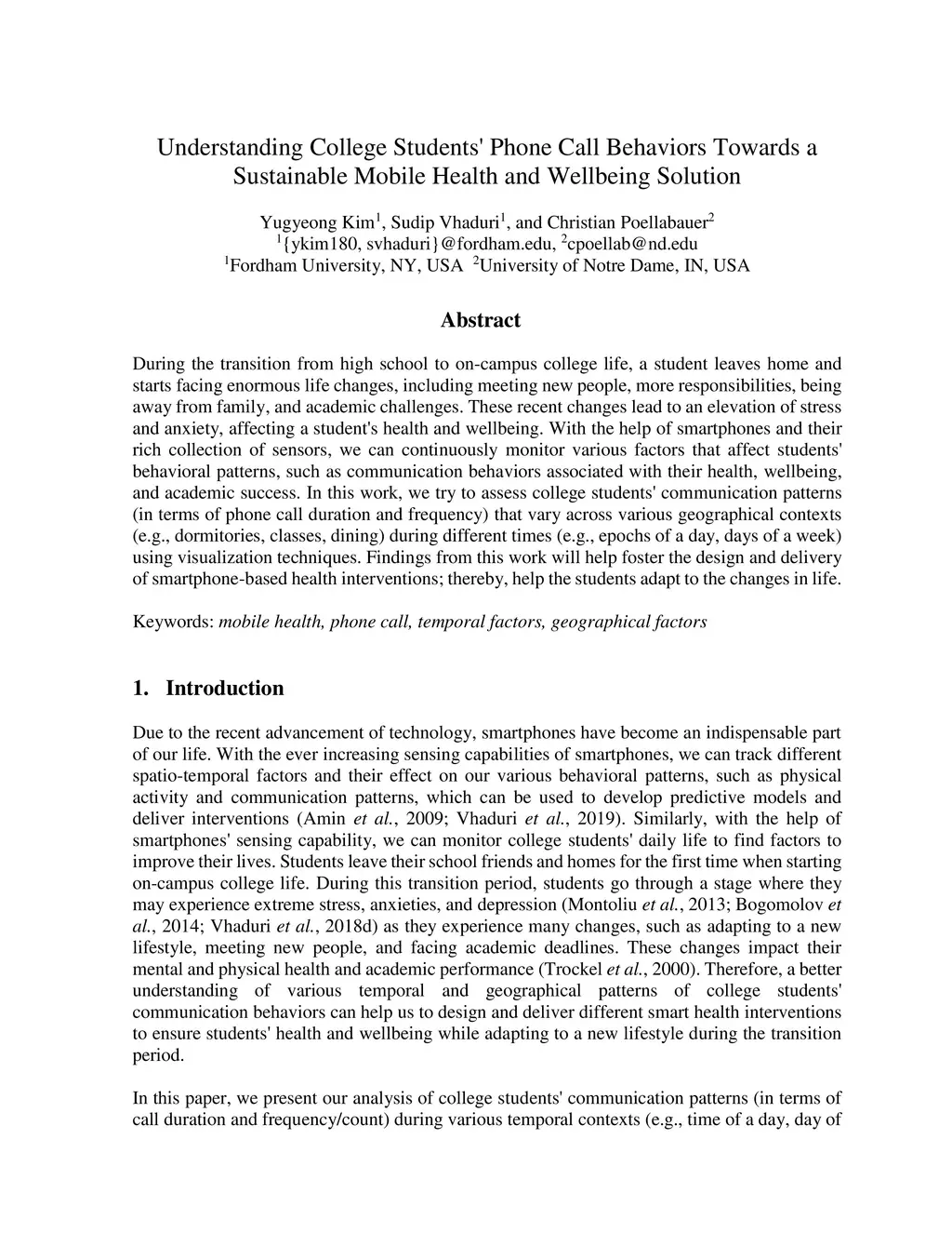 During the transition from high school to on-campus college life, a student leaves home and starts facing enormous life changes, including meeting new people, more responsibilities, being away from family, and academic challenges. These recent changes lead to an elevation of stress and anxiety, affecting a student's health and wellbeing. With the help of smartphones and their rich collection of sensors, we can continuously monitor various factors that affect students' behavioral patterns, such as communication behaviors associated with their health, wellbeing, and academic success. In this work, we try to assess college students' communication patterns (in terms of phone call duration and frequency) that vary across various geographical contexts (e.g., dormitories, classes, dining) during different times (e.g., epochs of a day, days of a week) using visualization techniques. Findings from this work will help foster the design and delivery of smartphone-based health interventions; thereby, help the students adapt to the changes in life.