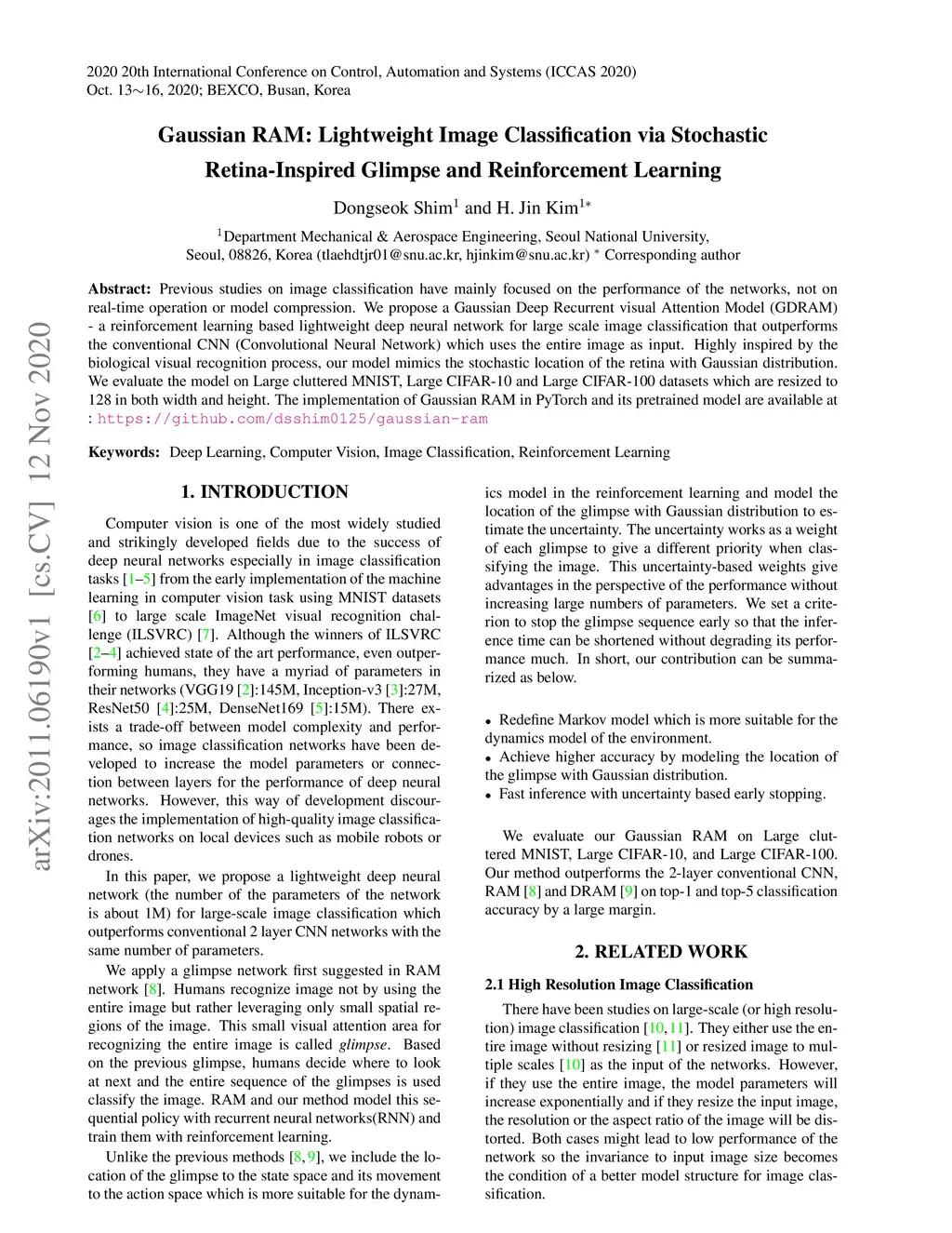 Gaussian RAM: Lightweight Image Classification via Stochastic