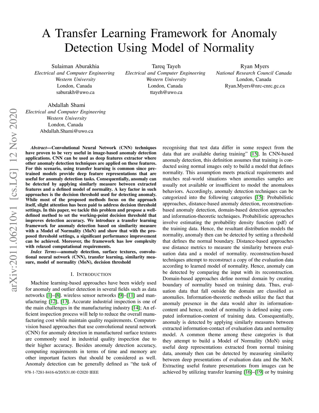 A Transfer Learning Framework for Anomaly Detection Using Model of