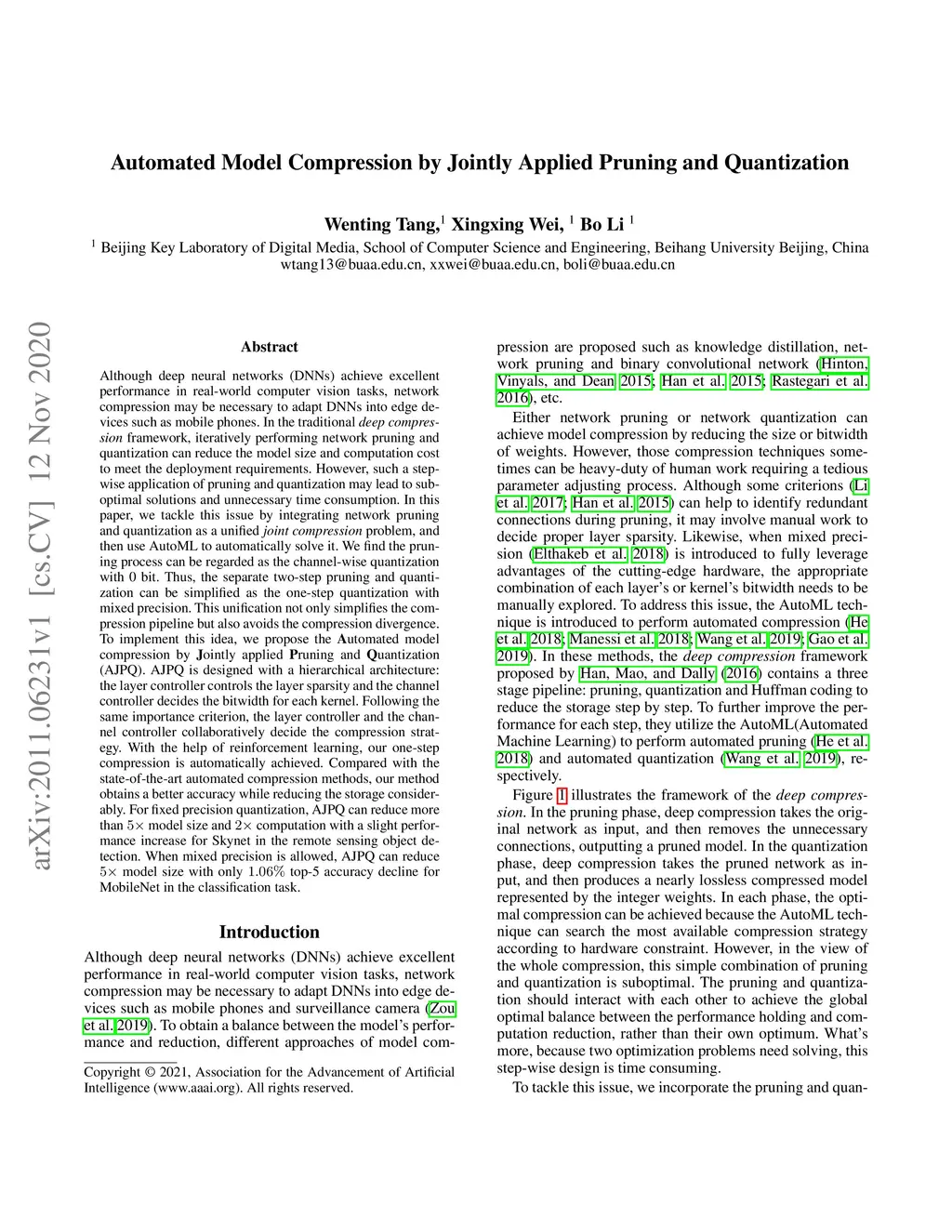Automated Model Compression by Jointly Applied Pruning and Quantization