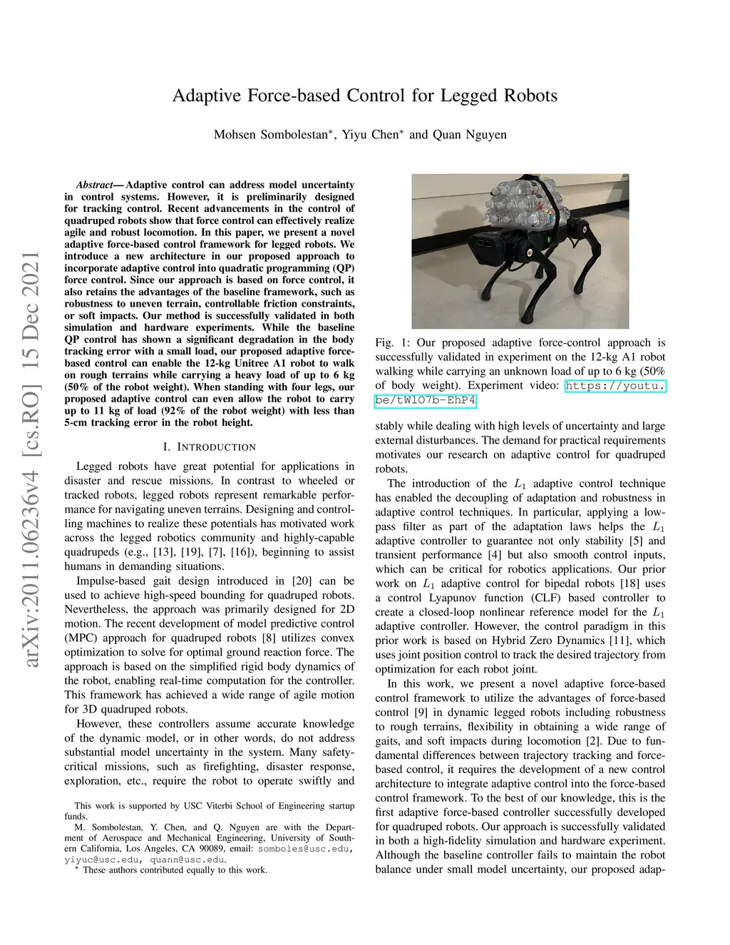 Adaptive Force-based Control for Legged Robots