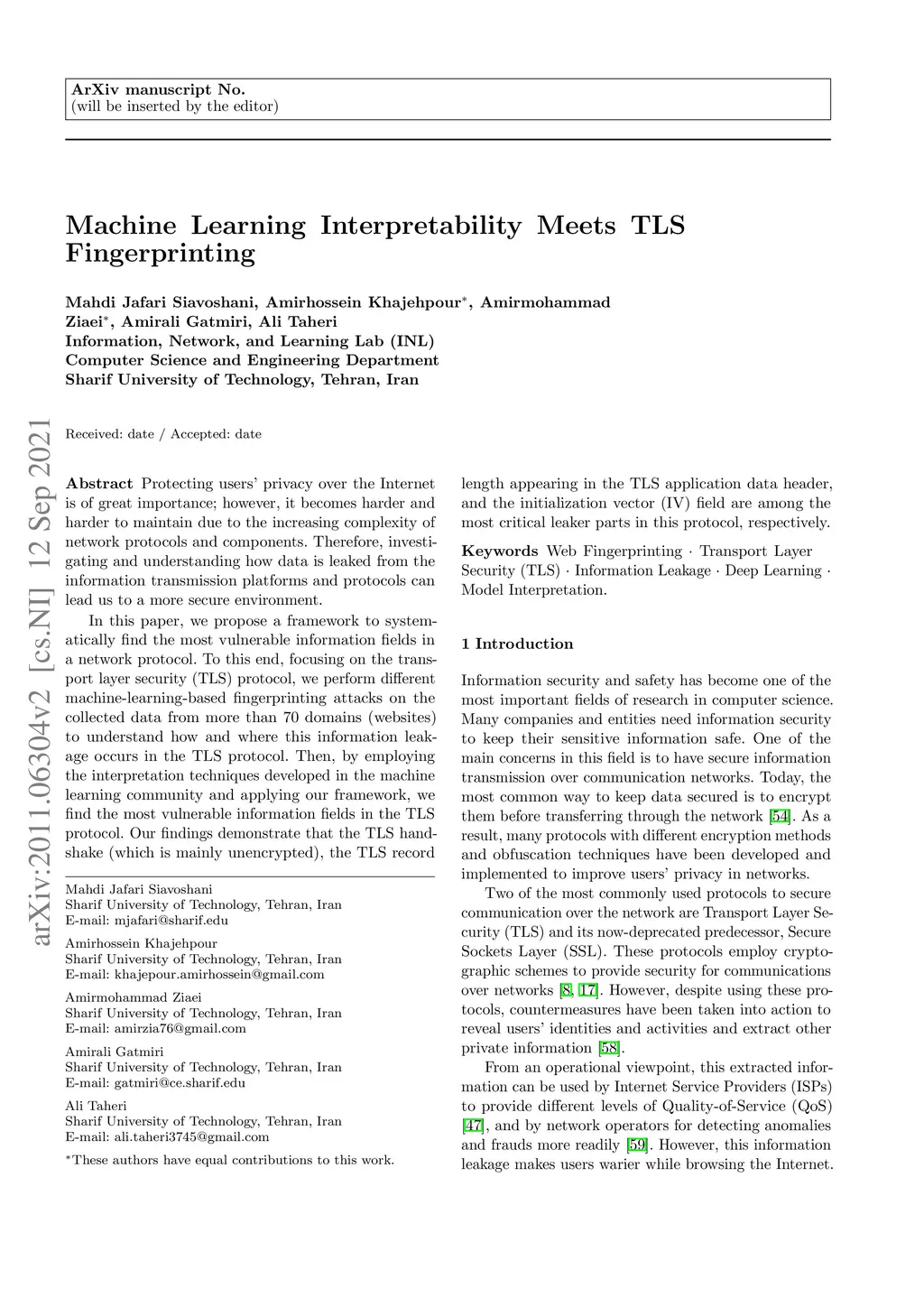 Protecting users' privacy over the Internet is of great importance; however, it becomes harder and harder to maintain due to the increasing complexity of network protocols and components. Therefore, investigating and understanding how data is leaked from the information transmission platforms and protocols can lead us to a more secure environment. In this paper, we propose a framework to systematically find the most vulnerable information fields in a network protocol. To this end, focusing on the transport layer security (TLS) protocol, we perform different machine-learning-based fingerprinting attacks on the collected data from more than 70 domains (websites) to understand how and where this information leakage occurs in the TLS protocol. Then, by employing the interpretation techniques developed in the machine learning community and applying our framework, we find the most vulnerable information fields in the TLS protocol. Our findings demonstrate that the TLS handshake (which is mainly unencrypted), the TLS record length appearing in the TLS application data header, and the initialization vector (IV) field are among the most critical leaker parts in this protocol, respectively.