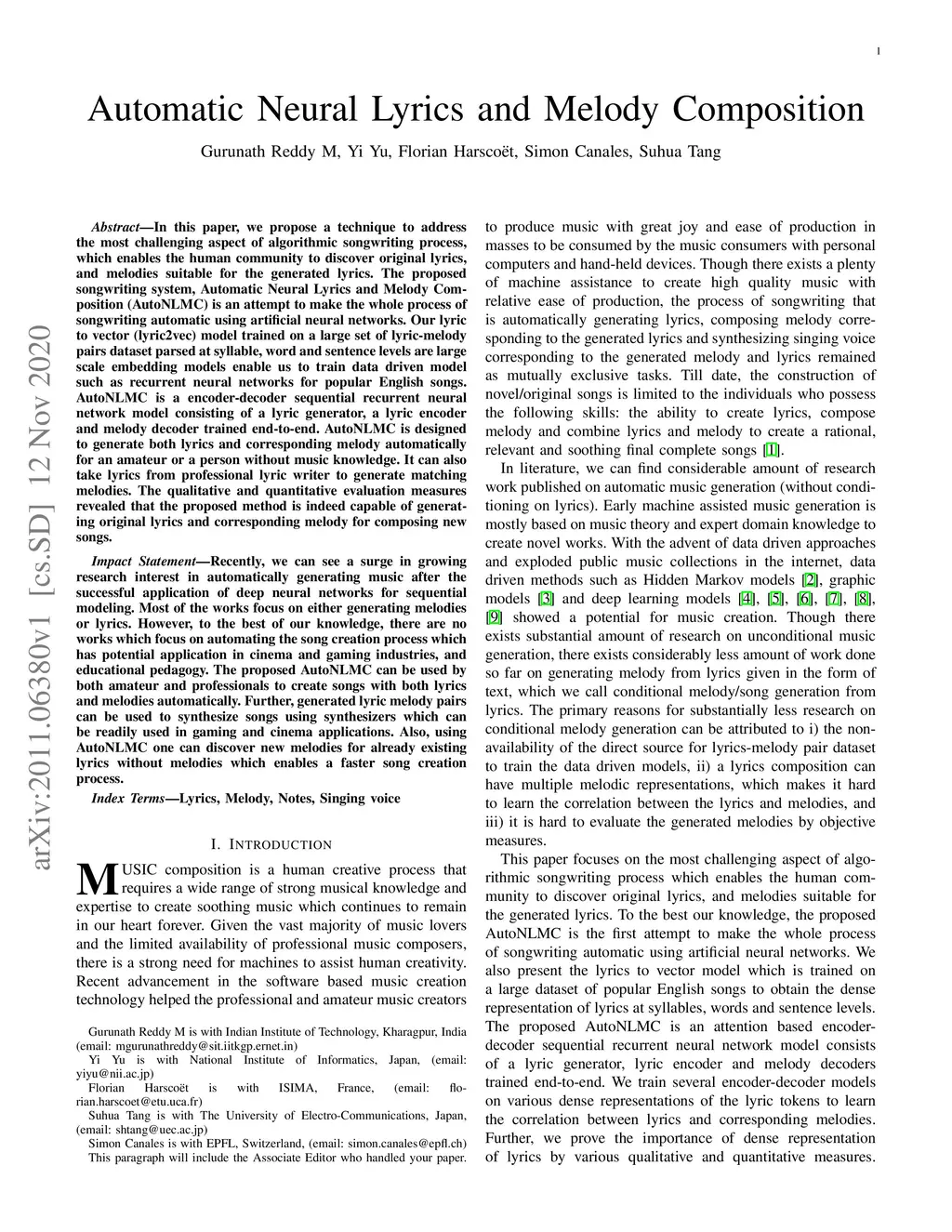 Automatic Neural Lyrics and Melody Composition