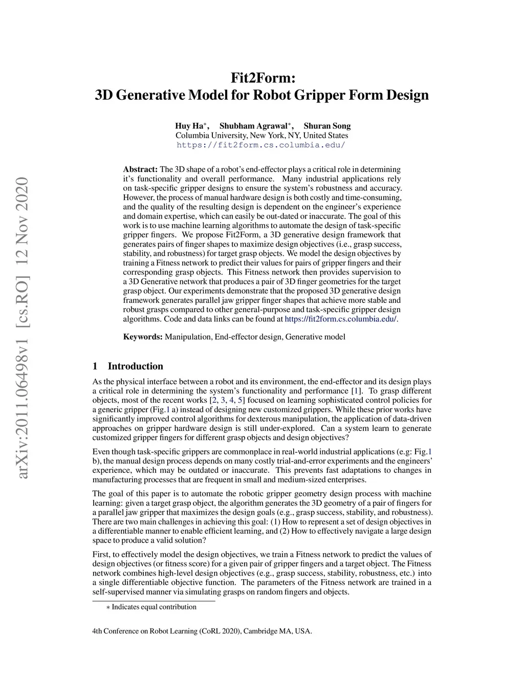 Fit2Form: 3D Generative Model for Robot Gripper Form Design