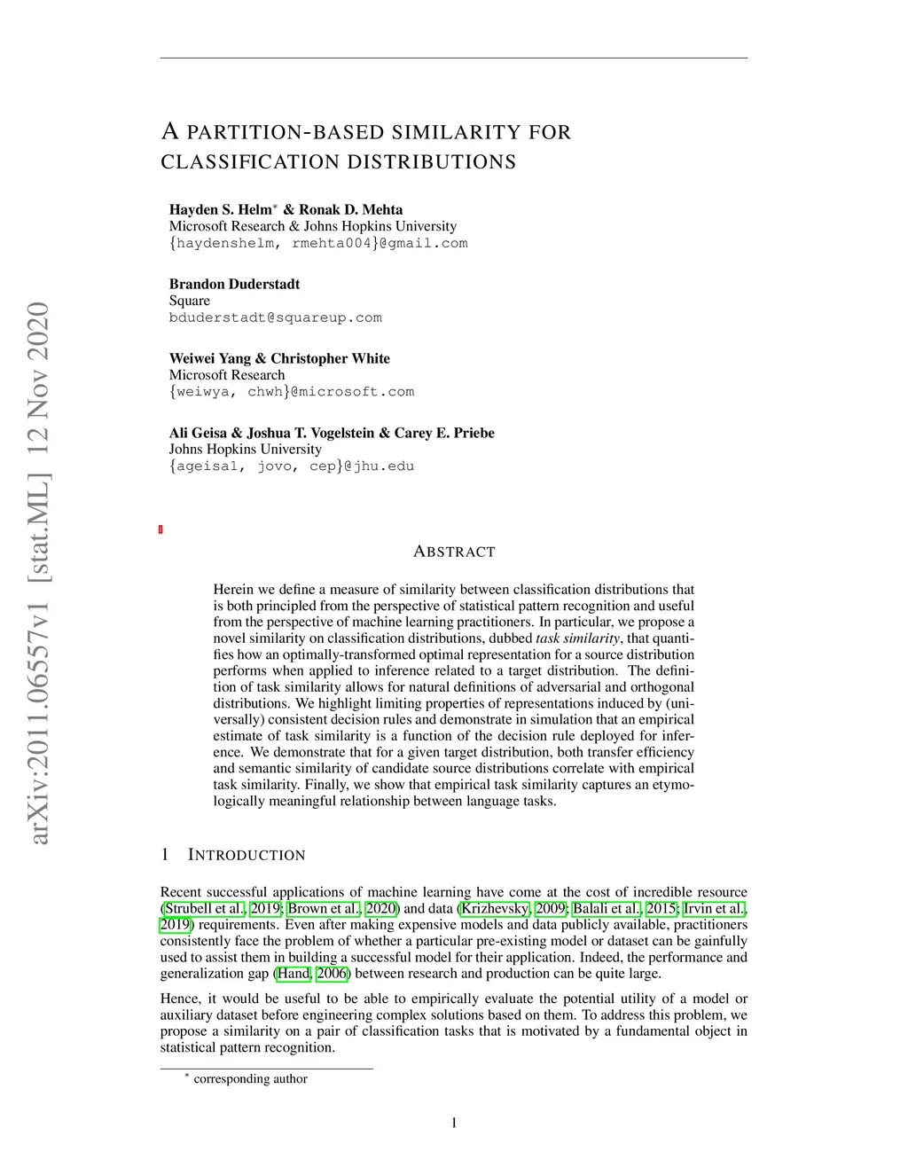 A partition-based similarity for classification distributions