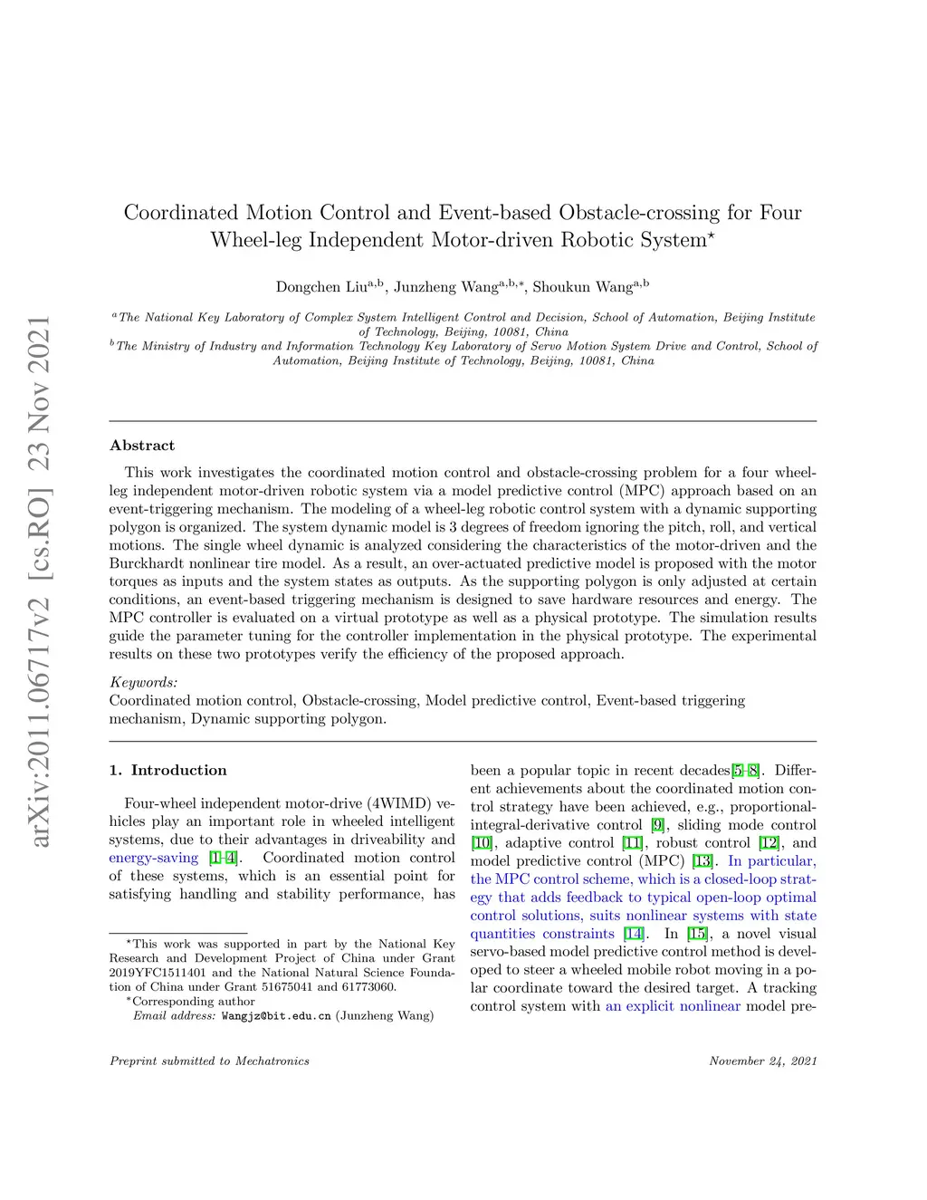 Wheel-leg Independent Motor-driven Robotic System via MPC