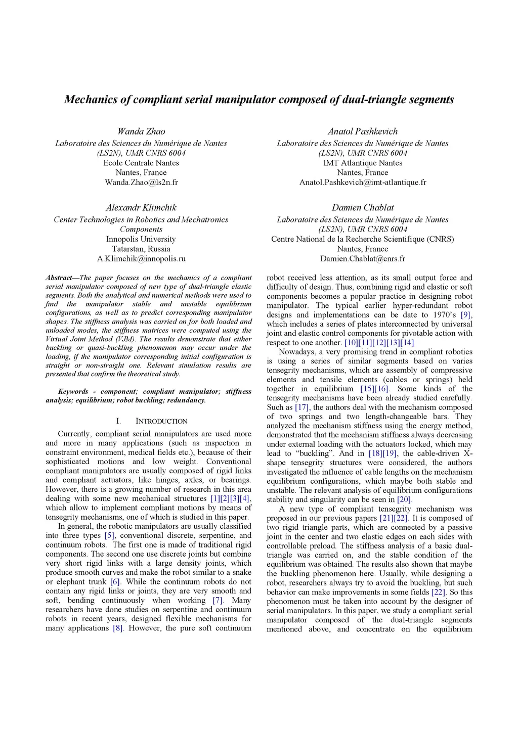 Mechanics of compliant serial manipulator composed of dual-triangle
