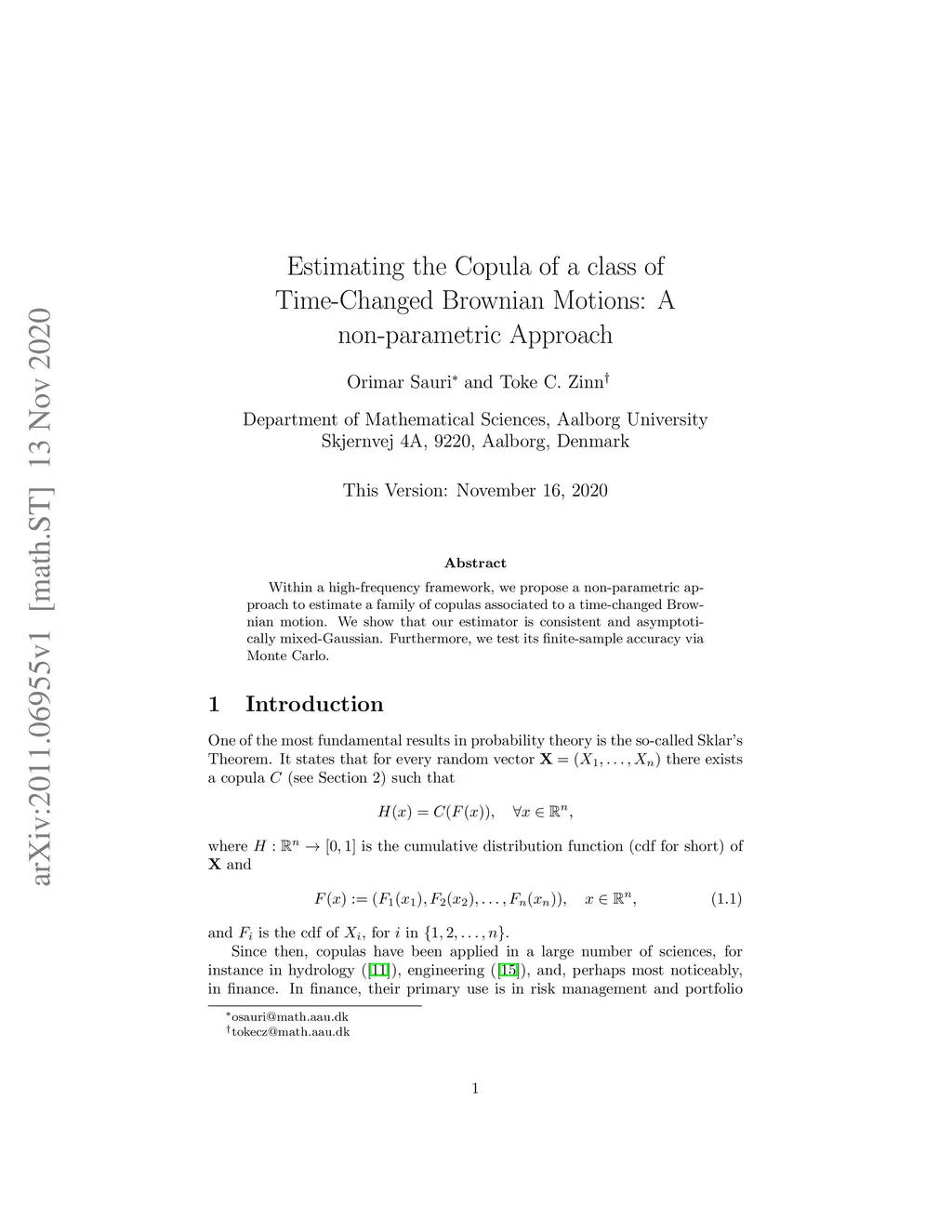 Within a high-frequency framework, we propose a non-parametric approach to estimate a family of copulas associated to a time-changed Brownian motion. We show that our estimator is consistent and asymptotically mixed-Gaussian. Furthermore, we test its finite-sample accuracy via Monte Carlo.