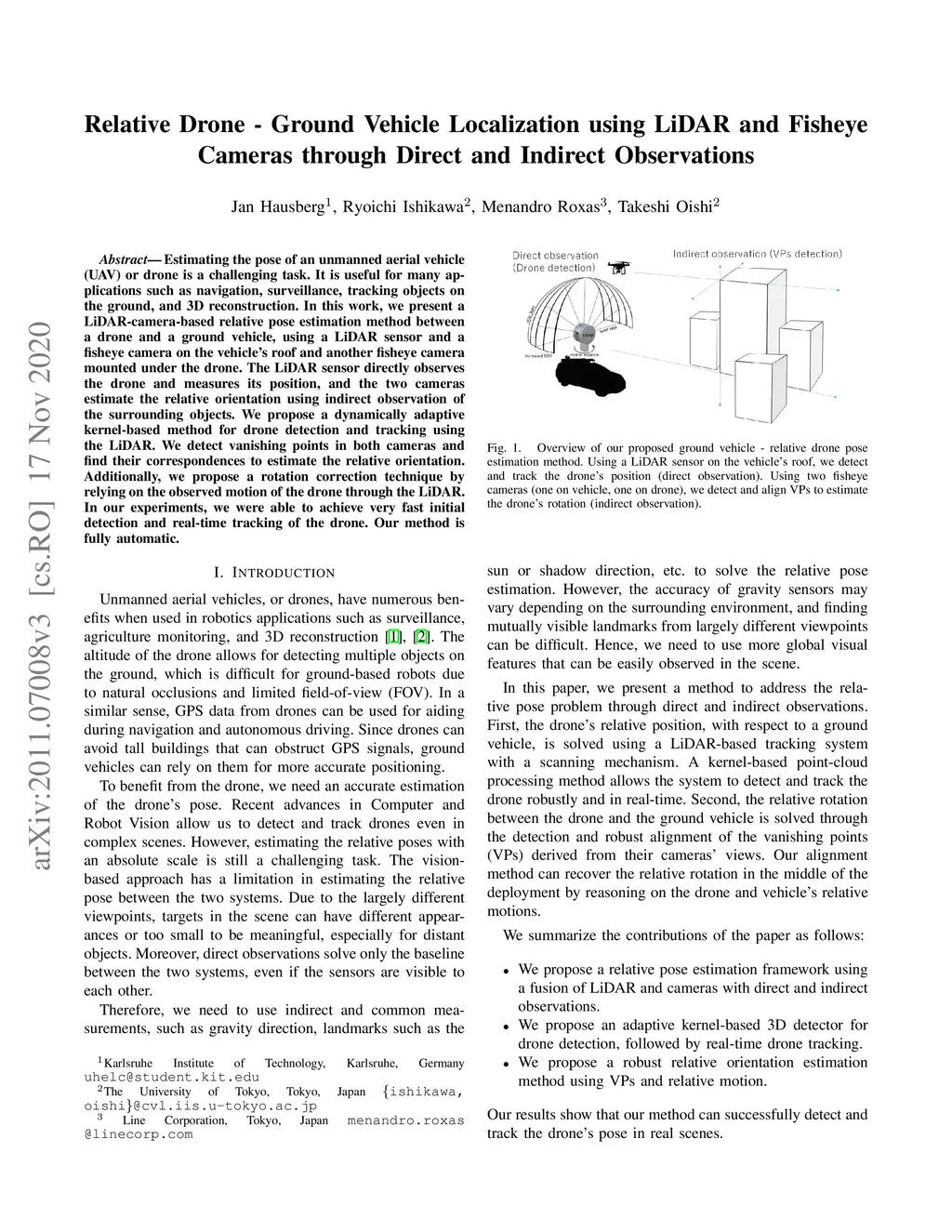 Relative Drone -- Ground Vehicle Localization using LiDAR and Fisheye