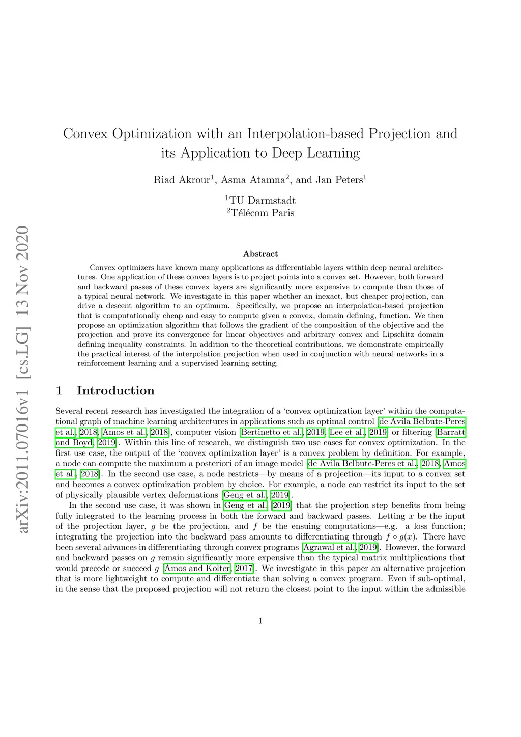Convex optimizers have known many applications as differentiable layers within deep neural architectures. One application of these convex layers is to project points into a convex set. However, both forward and backward passes of these convex layers are significantly more expensive to compute than those of a typical neural network. We investigate in this paper whether an inexact, but cheaper projection, can drive a descent algorithm to an optimum. Specifically, we propose an interpolation-based projection that is computationally cheap and easy to compute given a convex, domain defining, function. We then propose an optimization algorithm that follows the gradient of the composition of the objective and the projection and prove its convergence for linear objectives and arbitrary convex and Lipschitz domain defining inequality constraints. In addition to the theoretical contributions, we demonstrate empirically the practical interest of the interpolation projection when used in conjunction with neural networks in a reinforcement learning and a supervised learning setting.