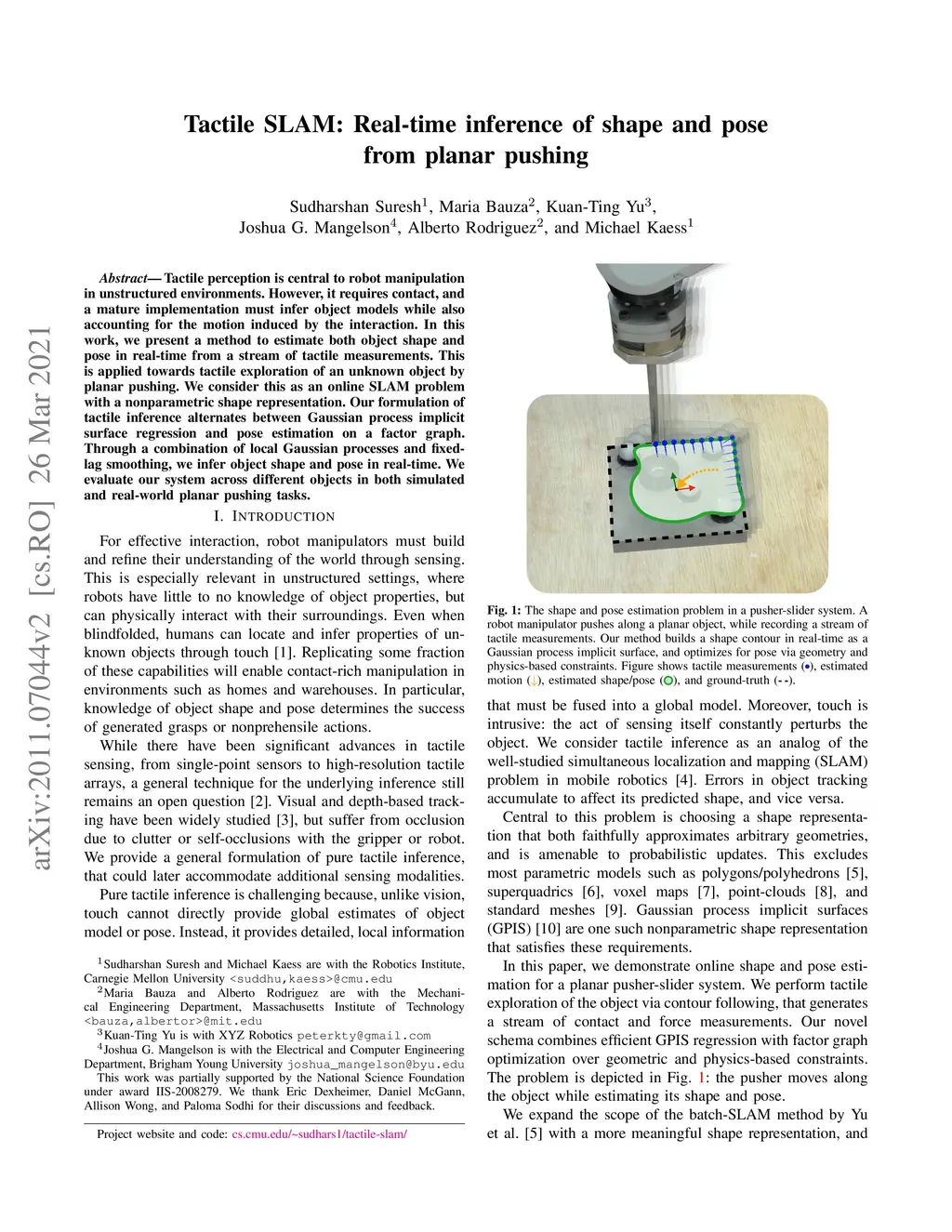 Tactile SLAM: Real-time inference of shape and pose from planar pushing