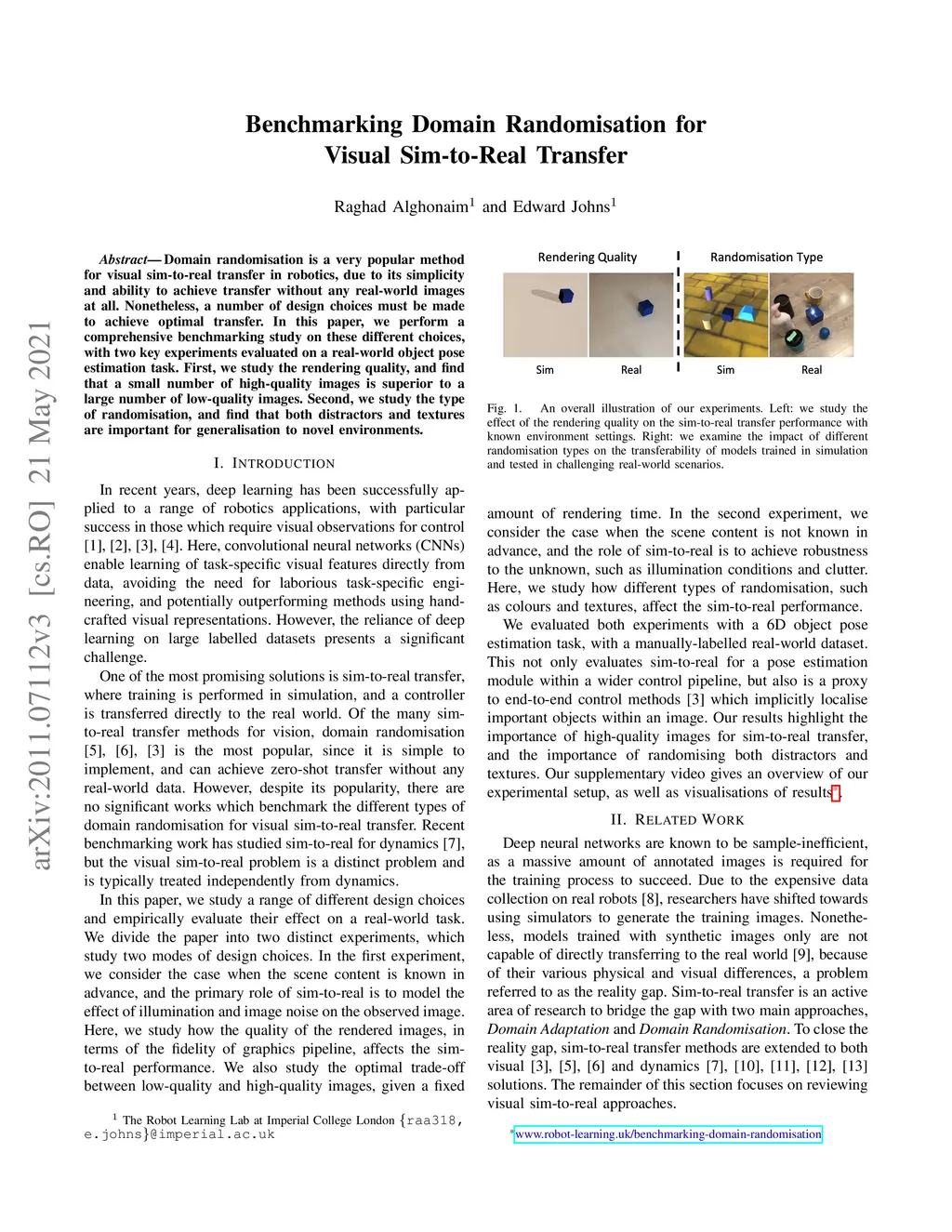 Benchmarking Domain Randomisation for Visual Sim-to-Real Transfer