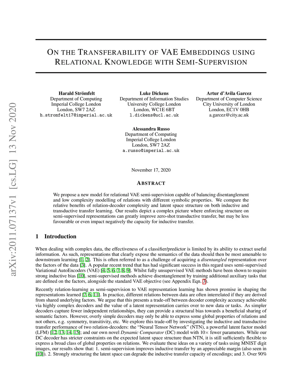 On the Transferability of VAE Embeddings using Relational Knowledge with