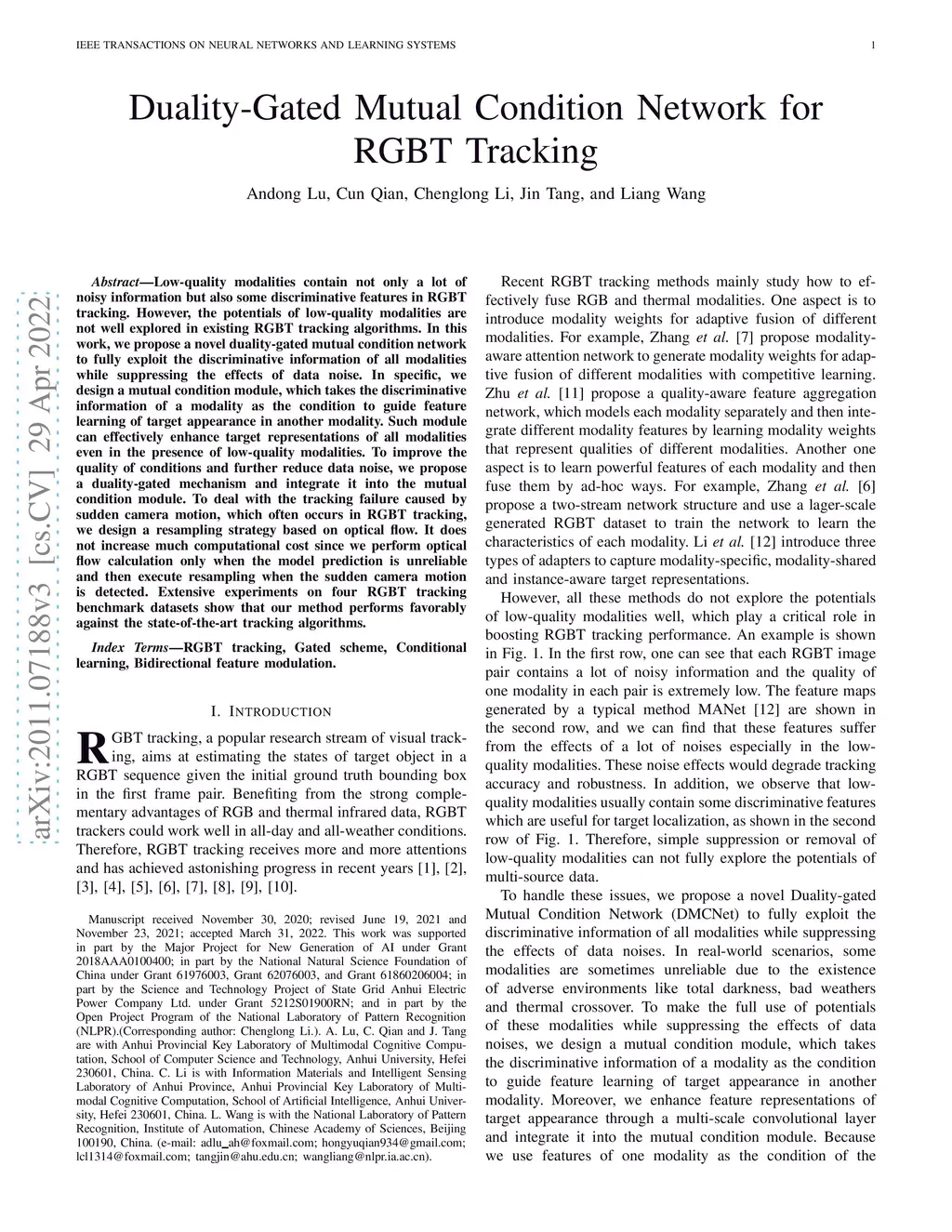 Duality-Gated Mutual Condition Network for RGBT Tracking
