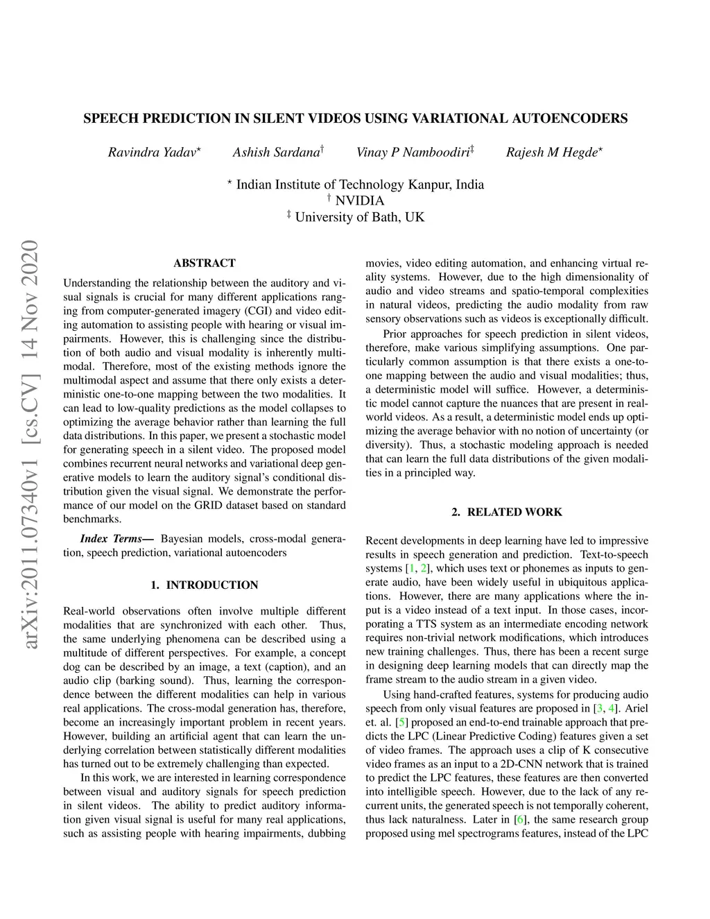 Speech Prediction in Silent Videos using Variational Autoencoders