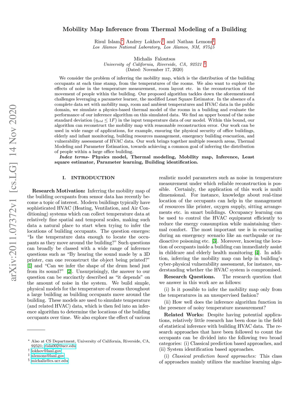 We consider the problem of inferring the mobility map, which is the distribution of the building occupants at each timestamp, from the temperatures of the rooms. We also want to explore the effects of noise in the temperature measurement, room layout, etc. in the reconstruction of the movement of people within the building. Our proposed algorithm tackles down the aforementioned challenges leveraging a parameter learner, the modified Least Square Estimator. In the absence of a complete data set with mobility map, room and ambient temperatures, and HVAC data in the public domain, we simulate a physics-based thermal model of the rooms in a building and evaluate the performance of our inference algorithm on this simulated data. We find an upper bound of the noise standard deviation (<= 1F) in the input temperature data of our model. Within this bound, our algorithm can reconstruct the mobility map with a reasonable reconstruction error. Our work can be used in a wide range of applications, for example, ensuring the physical security of office buildings, elderly and infant monitoring, building resources management, emergency building evacuation, and vulnerability assessment of HVAC data. Our work brings together multiple research areas, Thermal Modeling and Parameter Estimation, towards achieving a common goal of inferring the distribution of people within a large office building.