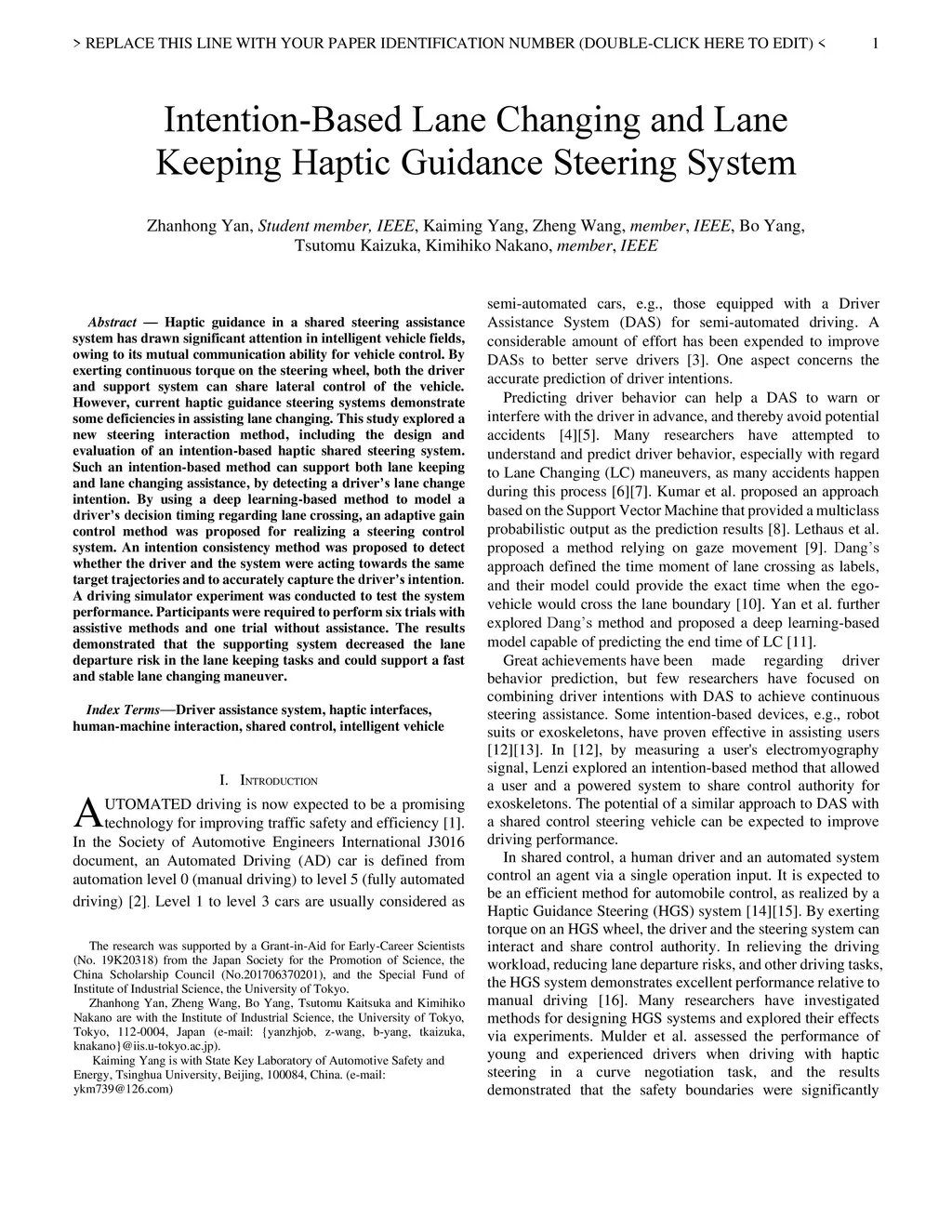 Intention-Based Lane Changing and Lane Keeping Haptic Guidance Steering