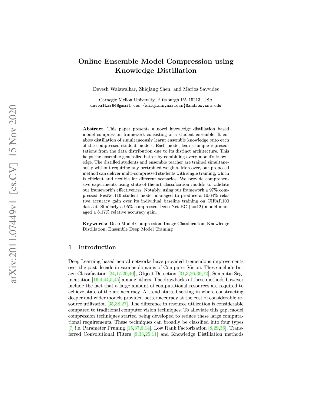 Online Ensemble Model Compression using Knowledge Distillation