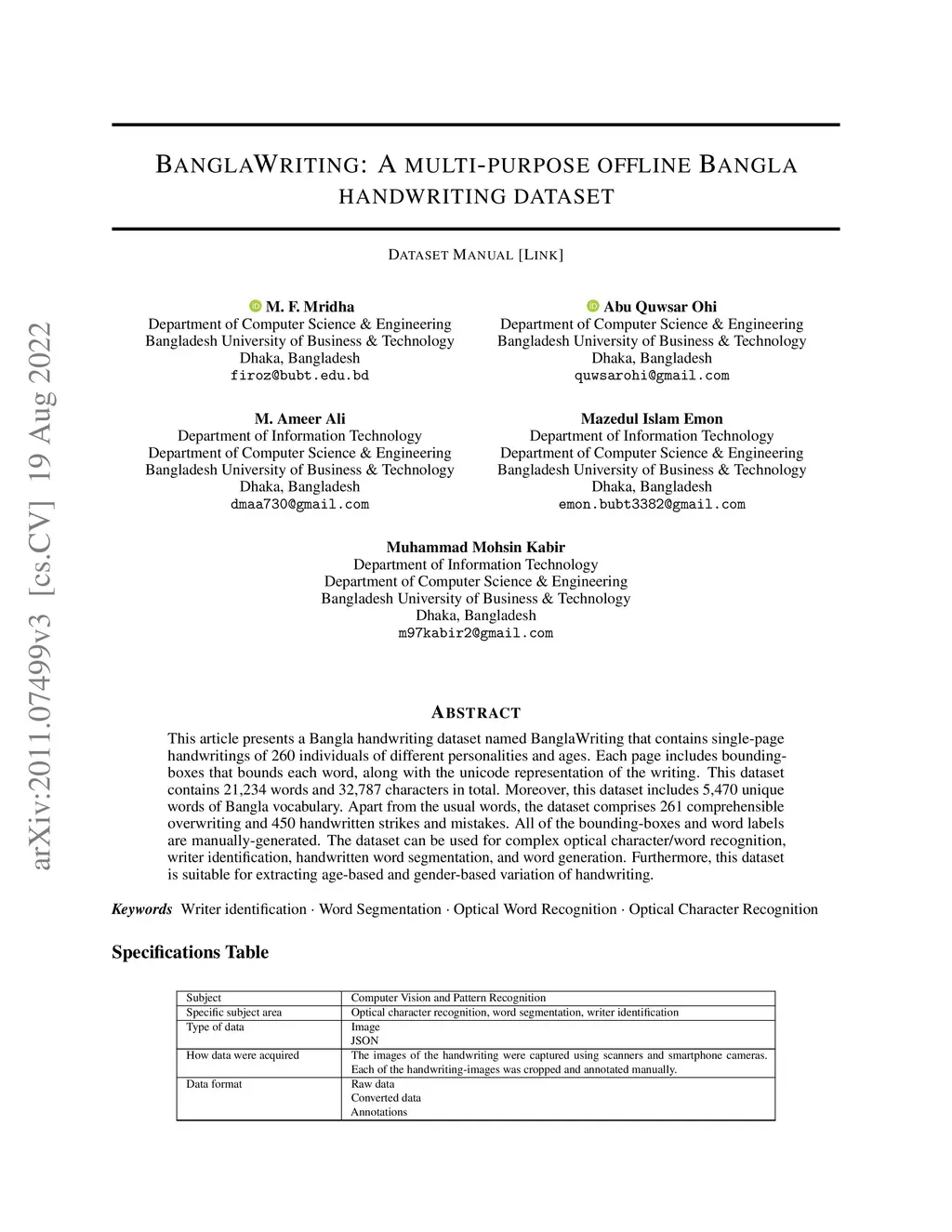 BanglaWriting: A multi-purpose offline Bangla handwriting dataset