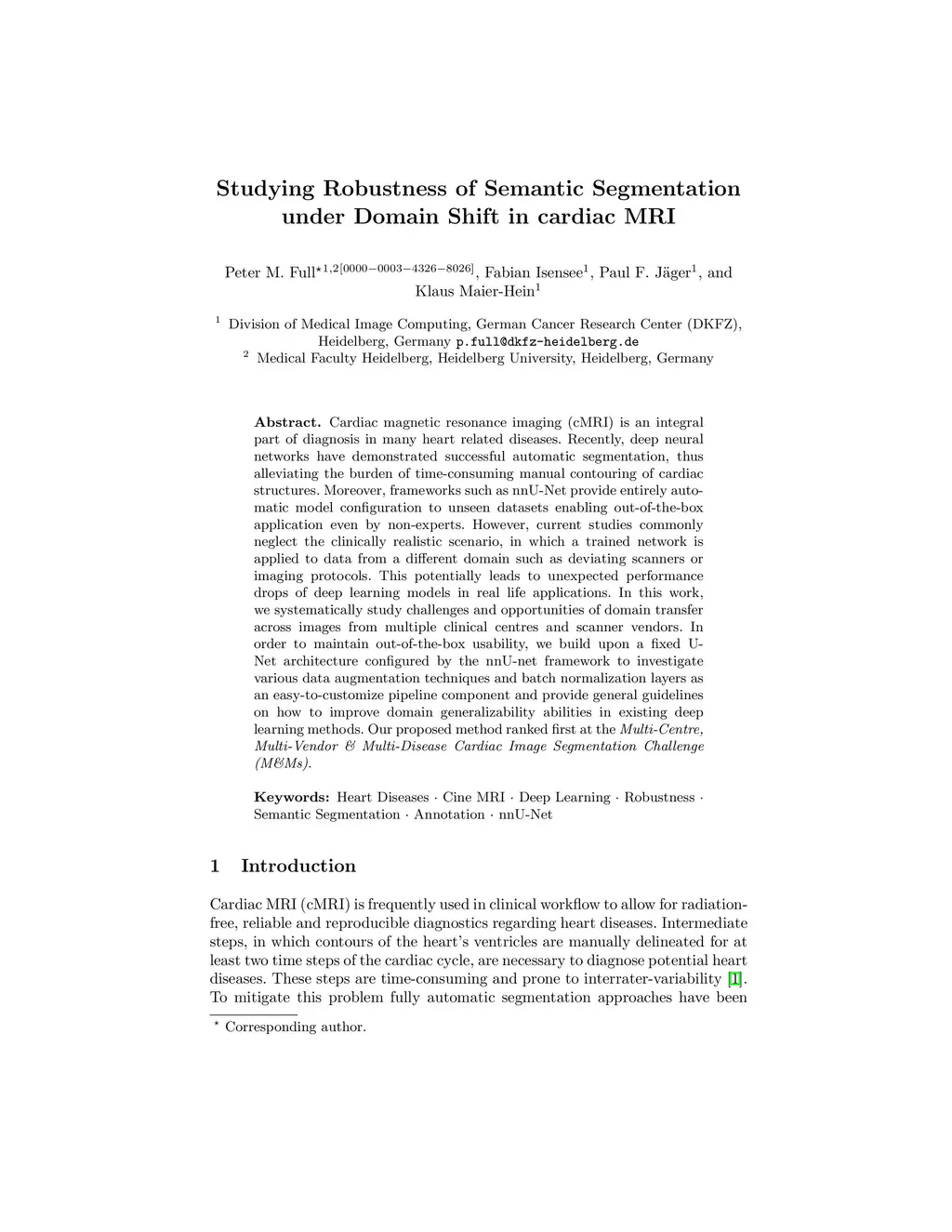 Cardiac magnetic resonance imaging (cMRI) is an integral part of diagnosis in many heart related diseases. Recently, deep neural networks have demonstrated successful automatic segmentation, thus alleviating the burden of time-consuming manual contouring of cardiac structures. Moreover, frameworks such as nnU-Net provide entirely automatic model configuration to unseen datasets enabling out-of-the-box application even by non-experts. However, current studies commonly neglect the clinically realistic scenario, in which a trained network is applied to data from a different domain such as deviating scanners or imaging protocols. This potentially leads to unexpected performance drops of deep learning models in real life applications. In this work, we systematically study challenges and opportunities of domain transfer across images from multiple clinical centres and scanner vendors. In order to maintain out-of-the-box usability, we build upon a fixed U-Net architecture configured by the nnU-net framework to investigate various data augmentation techniques and batch normalization layers as an easy-to-customize pipeline component and provide general guidelines on how to improve domain generalizability abilities in existing deep learning methods. Our proposed method ranked first at the Multi-Centre, Multi-Vendor & Multi-Disease Cardiac Image Segmentation Challenge (M&Ms).