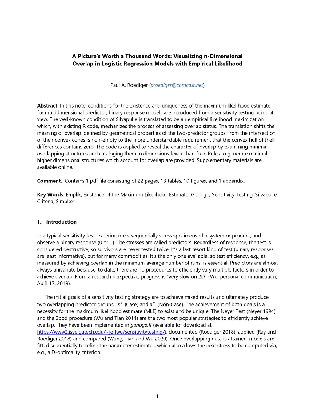 In this note, conditions for the existence and uniqueness of the maximum likelihood estimate for multidimensional predictor, binary response models are introduced from a sensitivity testing point of view. The well known condition of Silvapulle is translated to be an empirical likelihood maximization which, with existing R code, mechanizes the process of assessing overlap status. The translation shifts the meaning of overlap, defined by geometrical properties of the two-predictor groups, from the intersection of their convex cones is non-empty to the more understandable requirement that the convex hull of their differences contains zero. The code is applied to reveal the character of overlap by examining minimal overlapping structures and cataloging them in dimensions fewer than four. Rules to generate minimal higher dimensional structures which account for overlap are provided. Supplementary materials are available online.