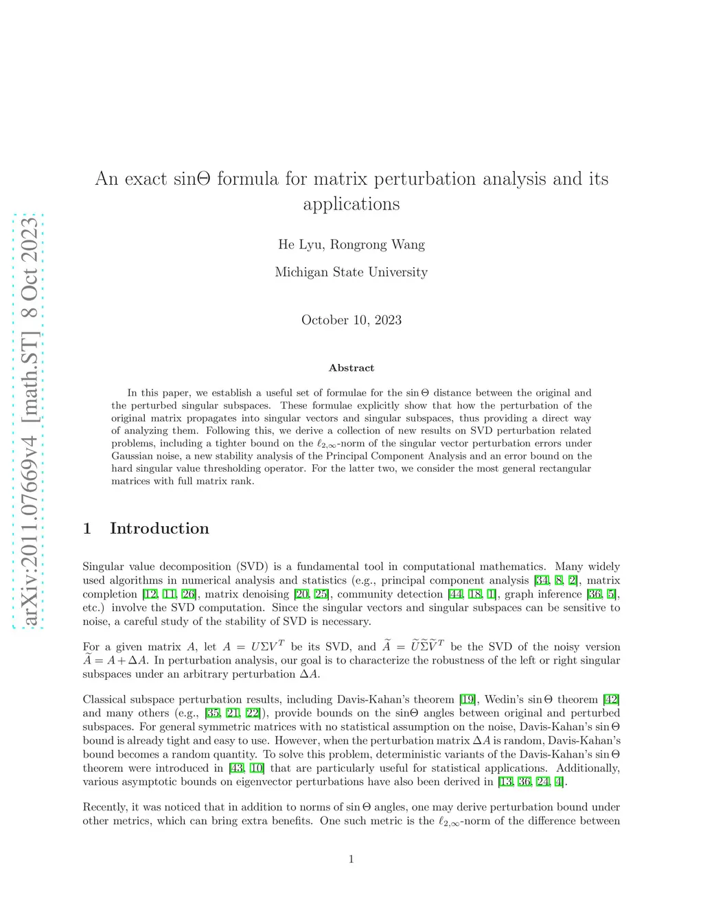 In this paper, we establish a useful set of formulae for the distance between the original and the perturbed singular subspaces. These formulae explicitly show that how the perturbation of the original matrix propagates into singular vectors and singular subspaces, thus providing a direct way of analyzing them. Following this, we derive a collection of new results on SVD perturbation related problems, including a tighter bound on the norm of the singular vector perturbation errors under Gaussian noise, a new stability analysis of the Principal Component Analysis and an error bound on the singular value thresholding operator. For the latter two, we consider the most general rectangular matrices with full matrix rank.