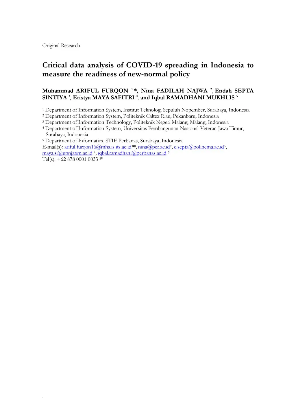 Critical data analysis of COVID-19 spreading in Indonesia to measure the