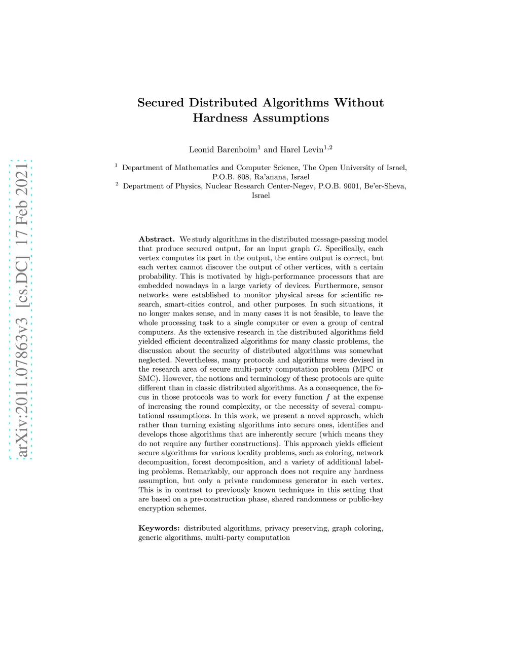 Secured Distributed Algorithms Without Hardness Assumptions
