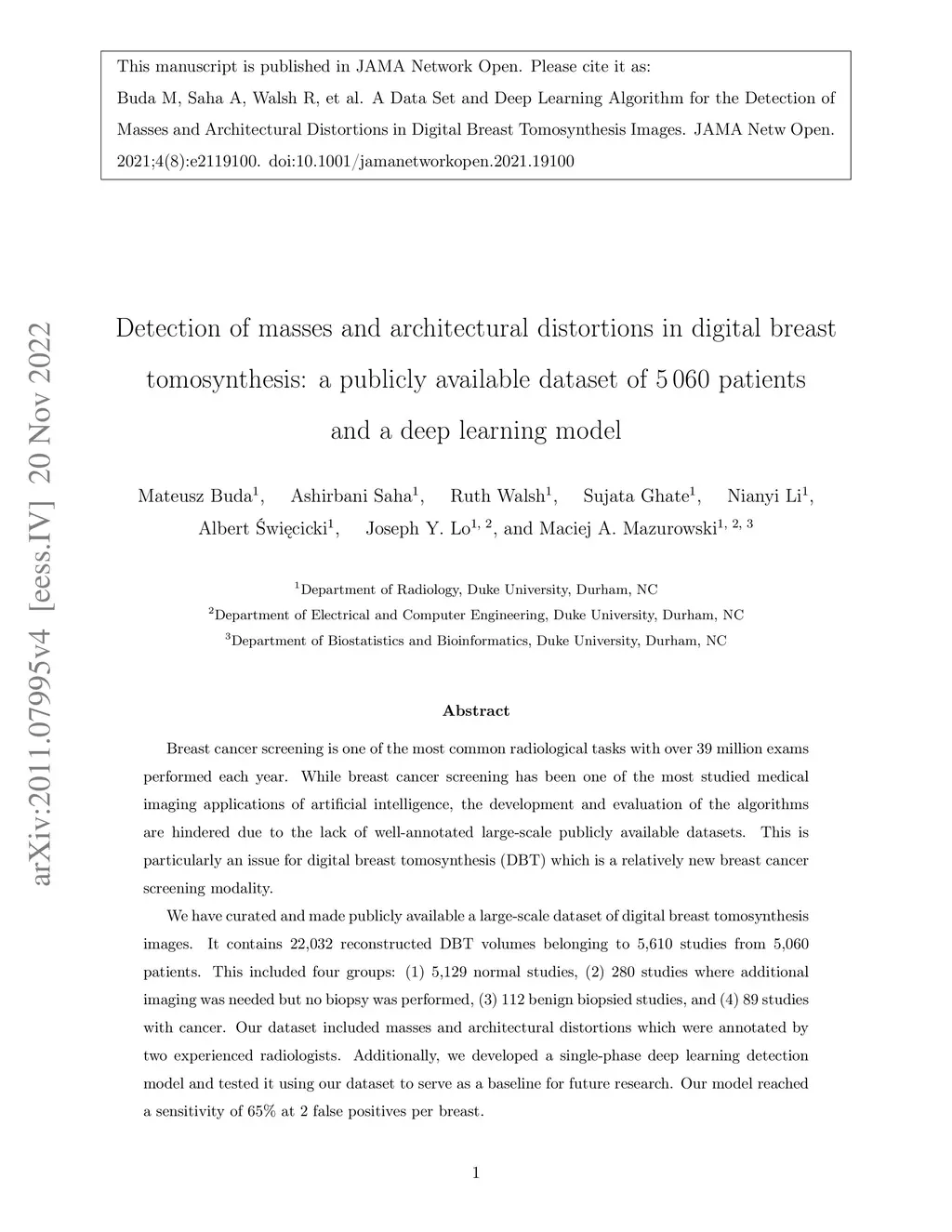 tomosynthesis: a publicly available dataset of 5,060 patients and a deep