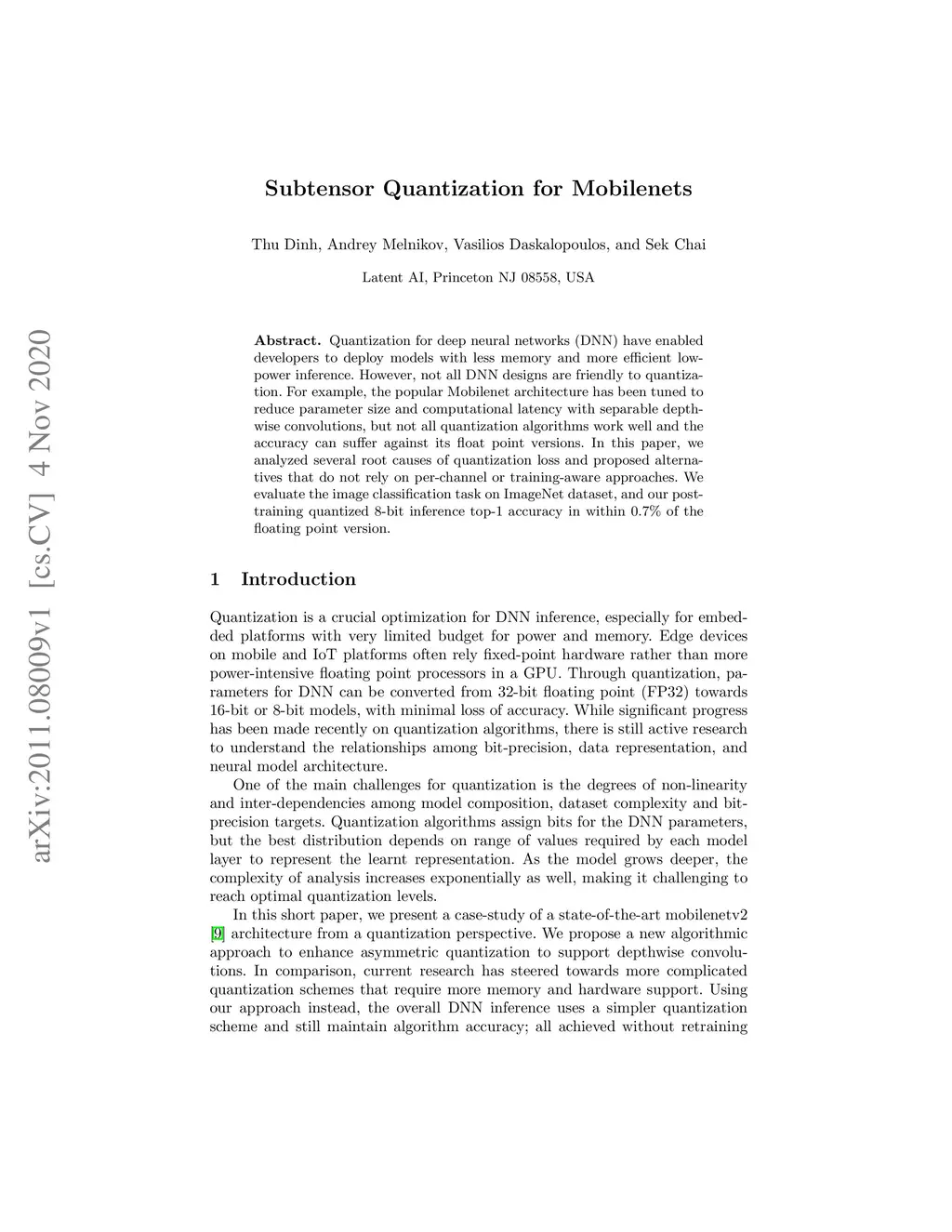 Quantization for deep neural networks (DNN) have enabled developers to deploy models with less memory and more efficient low-power inference. However, not all DNN designs are friendly to quantization. For example, the popular Mobilenet architecture has been tuned to reduce parameter size and computational latency with separable depth-wise convolutions, but not all quantization algorithms work well and the accuracy can suffer against its float point versions. In this paper, we analyzed several root causes of quantization loss and proposed alternatives that do not rely on per-channel or training-aware approaches. We evaluate the image classification task on ImageNet dataset, and our post-training quantized 8-bit inference top-1 accuracy in within 0.7% of the floating point version.