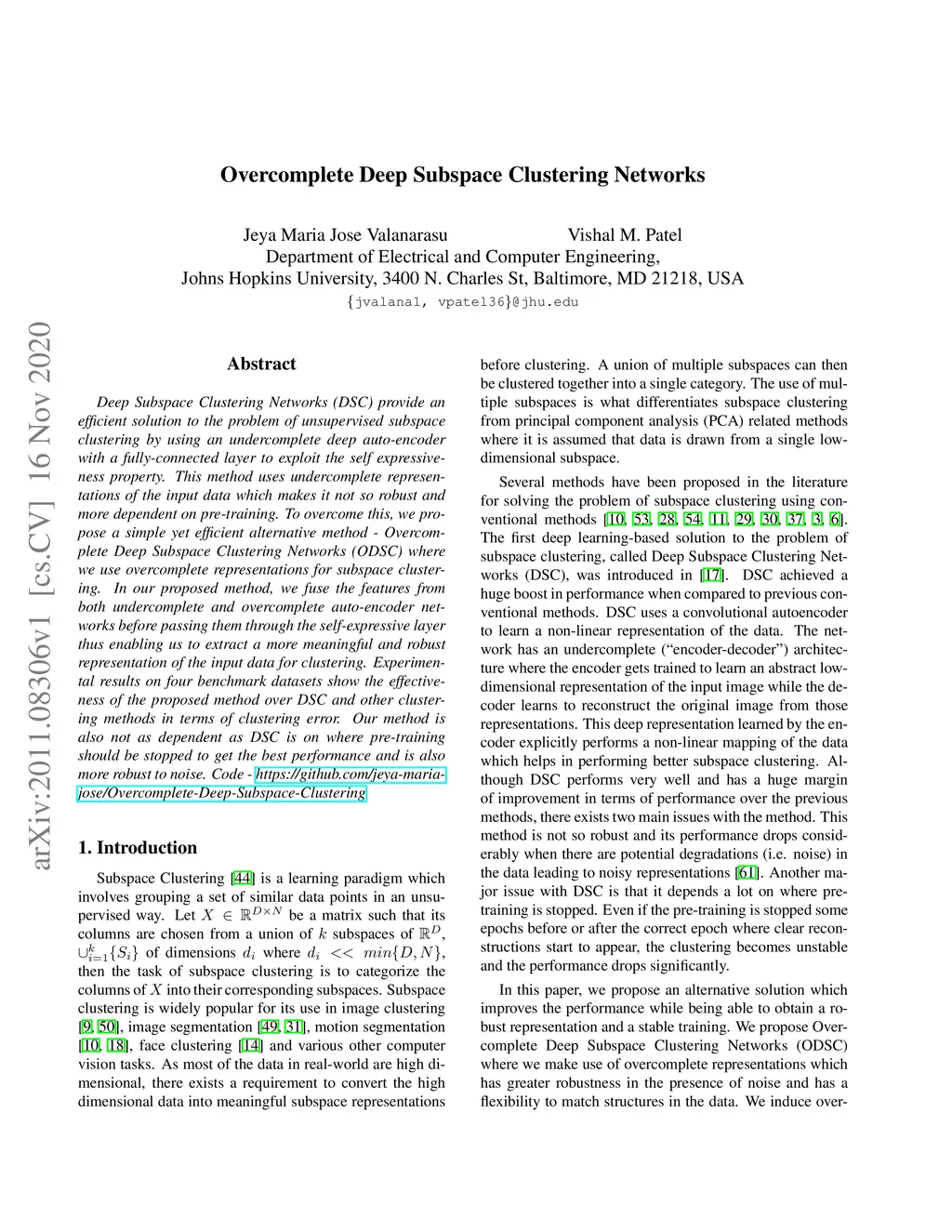 Overcomplete Deep Subspace Clustering Networks