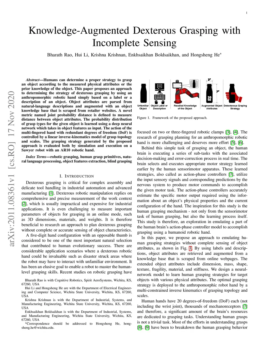 Knowledge-Augmented Dexterous Grasping with Incomplete Sensing