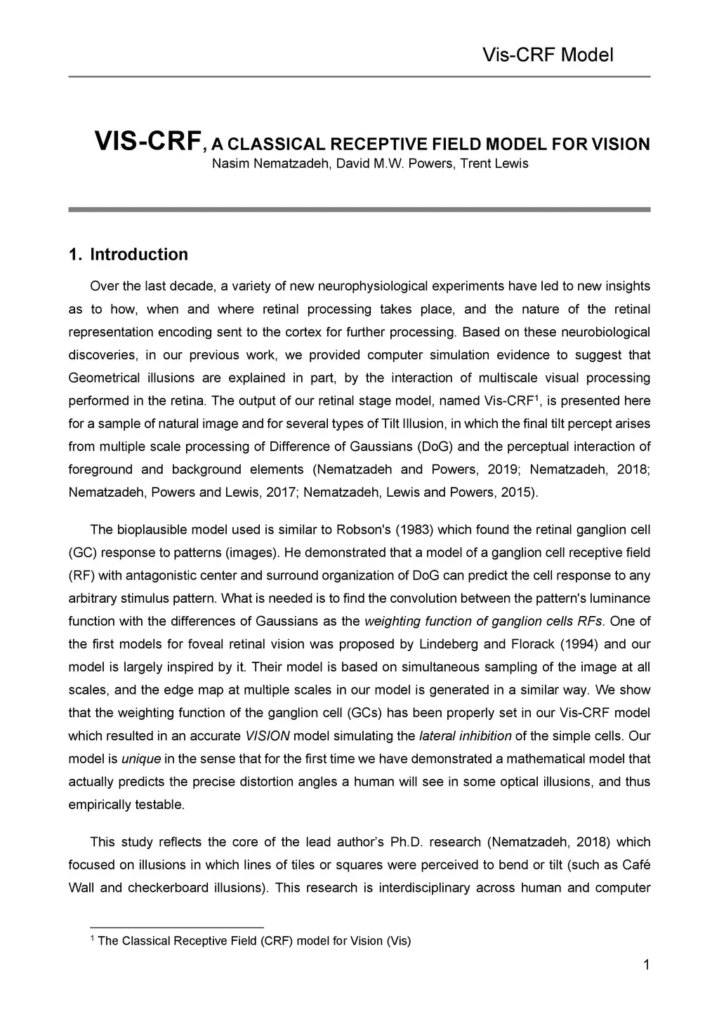 Vis-CRF, A Classical Receptive Field Model for VISION