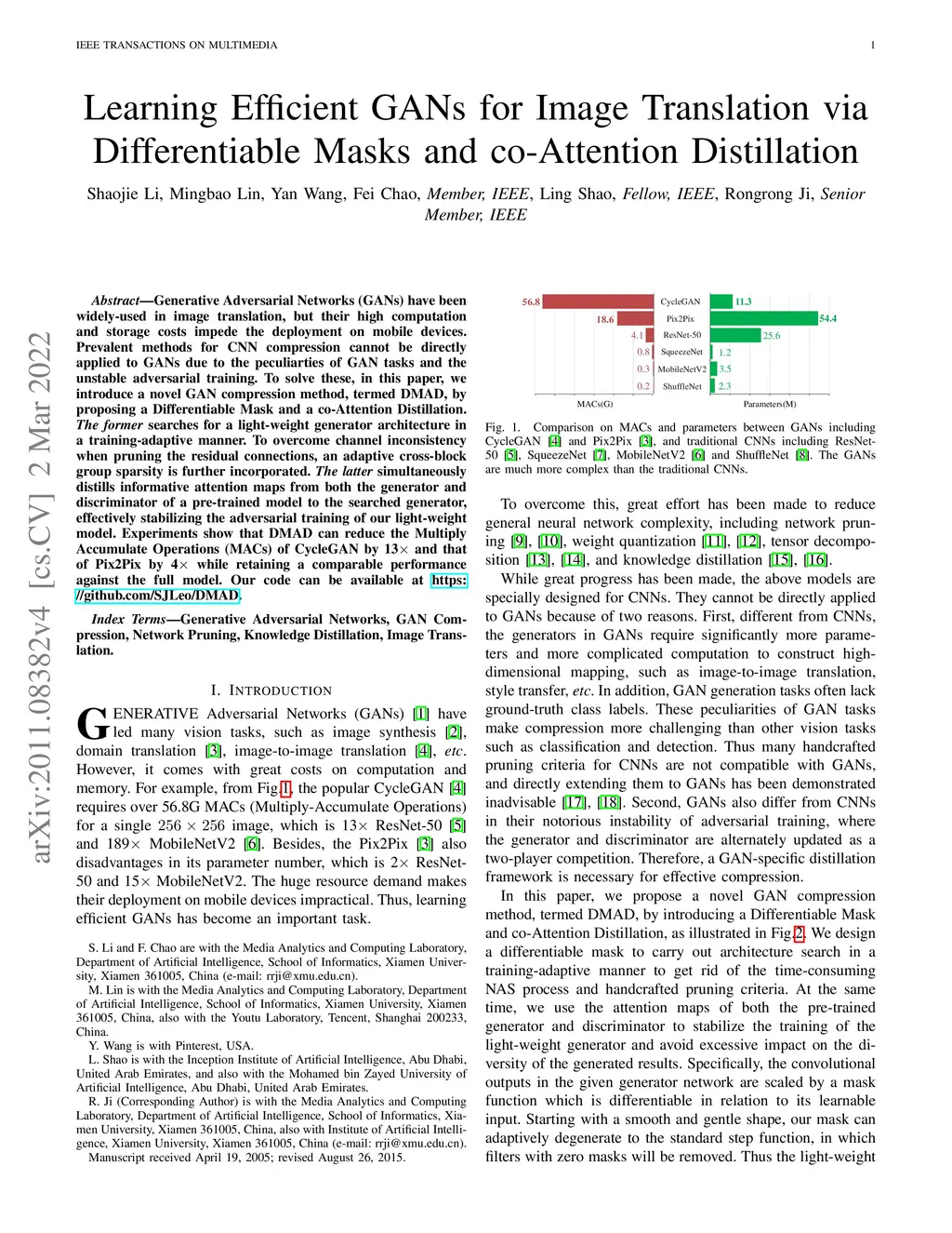 Learning Efficient GANs for Image Translation via Differentiable Masks