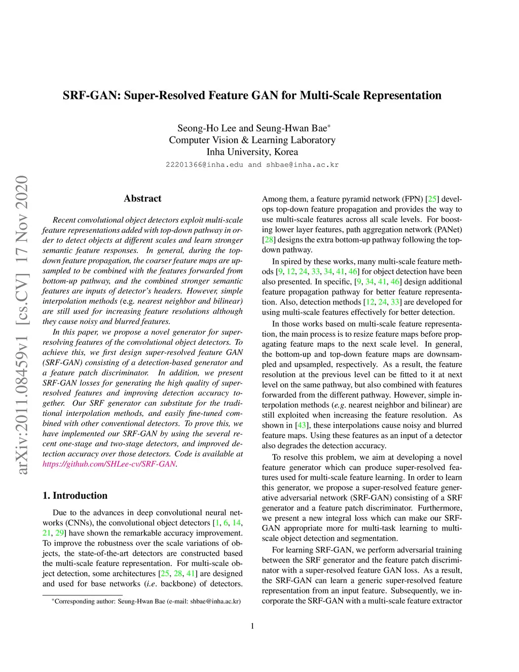 SRF-GAN: Super-Resolved Feature GAN for Multi-Scale Representation