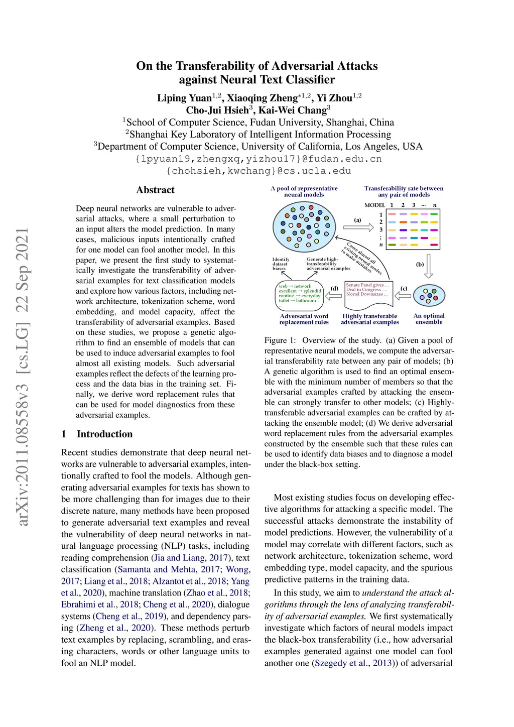 On the Transferability of Adversarial Attacksagainst Neural Text