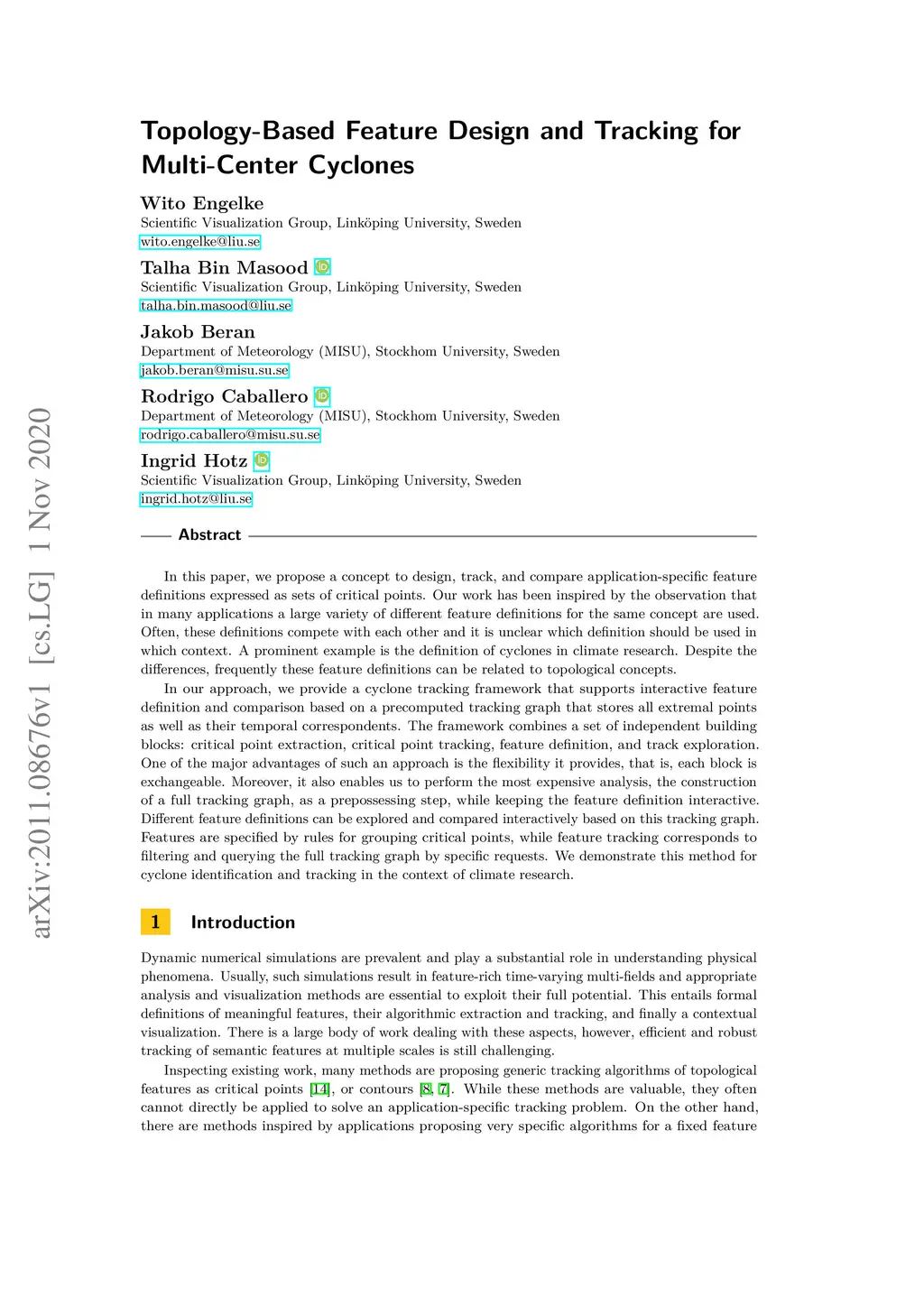 Topology-Based Feature Design and Tracking for Multi-Center Cyclones