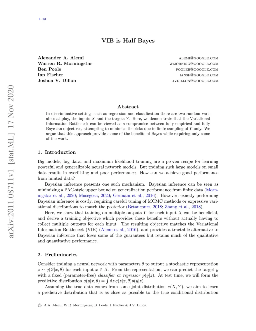 In discriminative settings such as regression and classification there are two random variables at play, the inputs X and the targets Y. Here, we demonstrate that the Variational Information Bottleneck can be viewed as a compromise between fully empirical and fully Bayesian objectives, attempting to minimize the risks due to finite sampling of Y only. We argue that this approach provides some of the benefits of Bayes while requiring only some of the work.