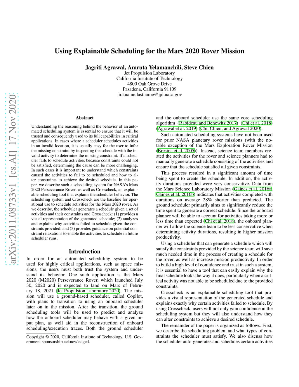 Using Explainable Scheduling for the Mars 2020 Rover Mission