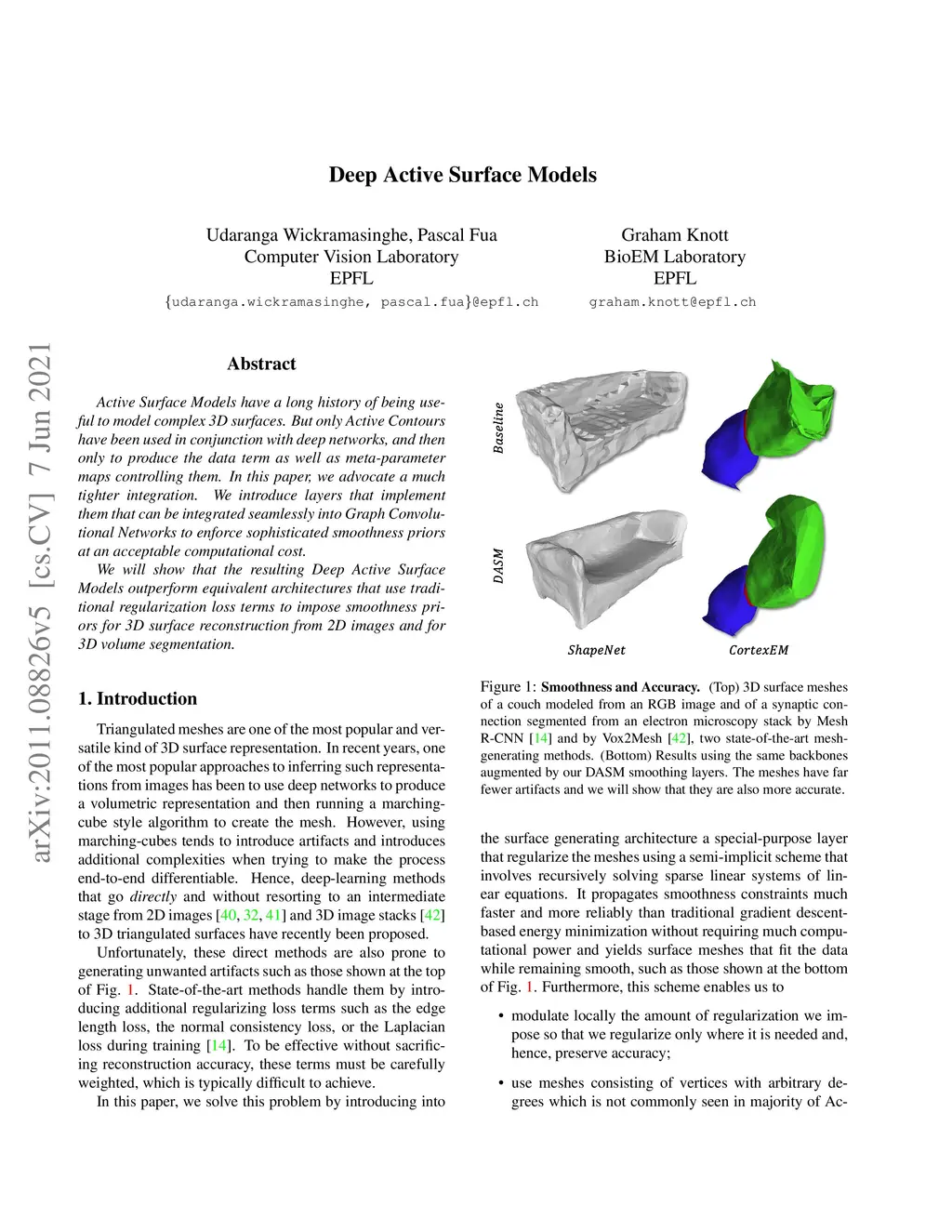 Active Surface Models have a long history of being useful to model complex 3D surfaces but only Active Contours have been used in conjunction with deep networks, and then only to produce the data term as well as meta-parameter maps controlling them. In this paper, we advocate a much tighter integration. We introduce layers that implement them that can be integrated seamlessly into Graph Convolutional Networks to enforce sophisticated smoothness priors at an acceptable computational cost. We will show that the resulting Deep Active Surface Models outperform equivalent architectures that use traditional regularization loss terms to impose smoothness priors for 3D surface reconstruction from 2D images and for 3D volume segmentation.