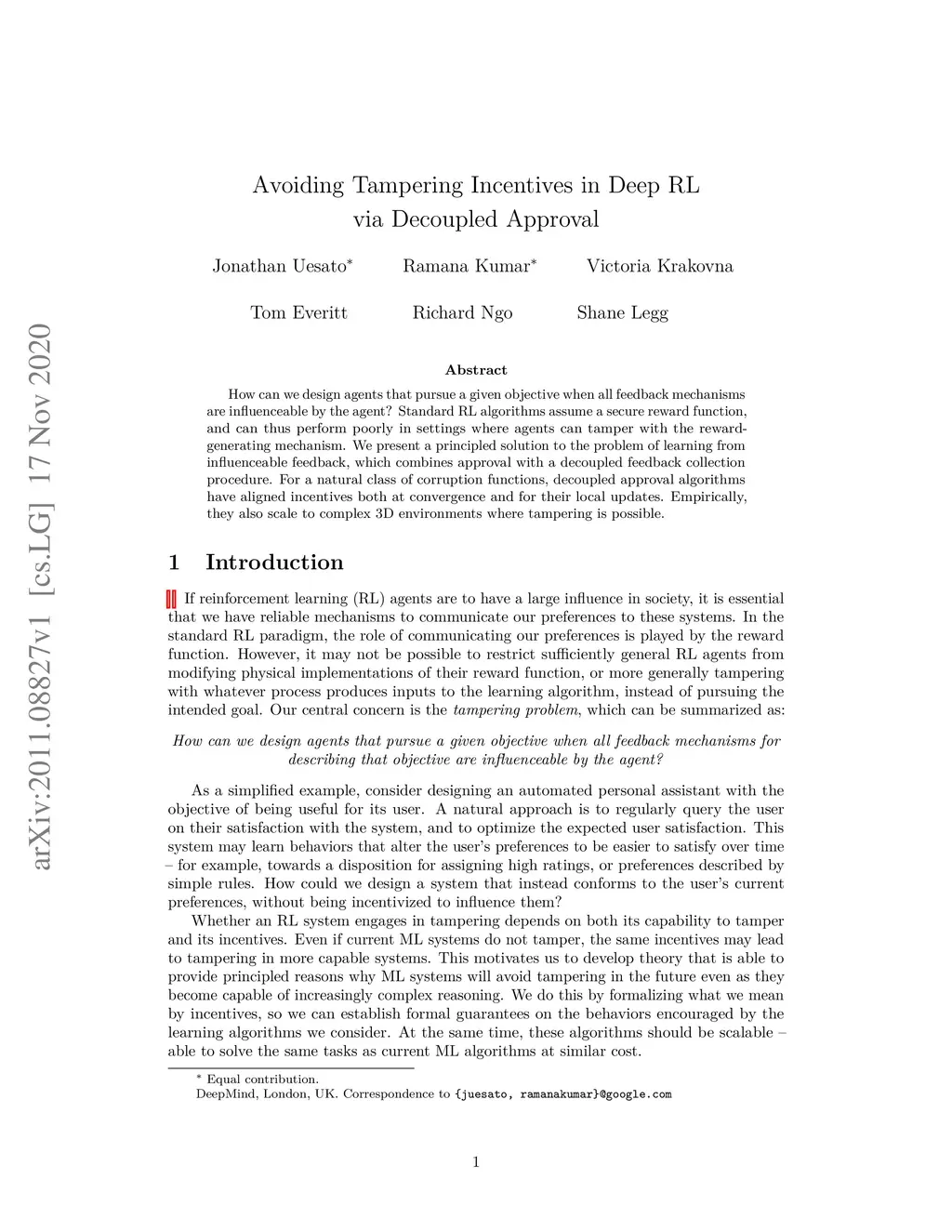 Avoiding Tampering Incentives in Deep RL via Decoupled Approval