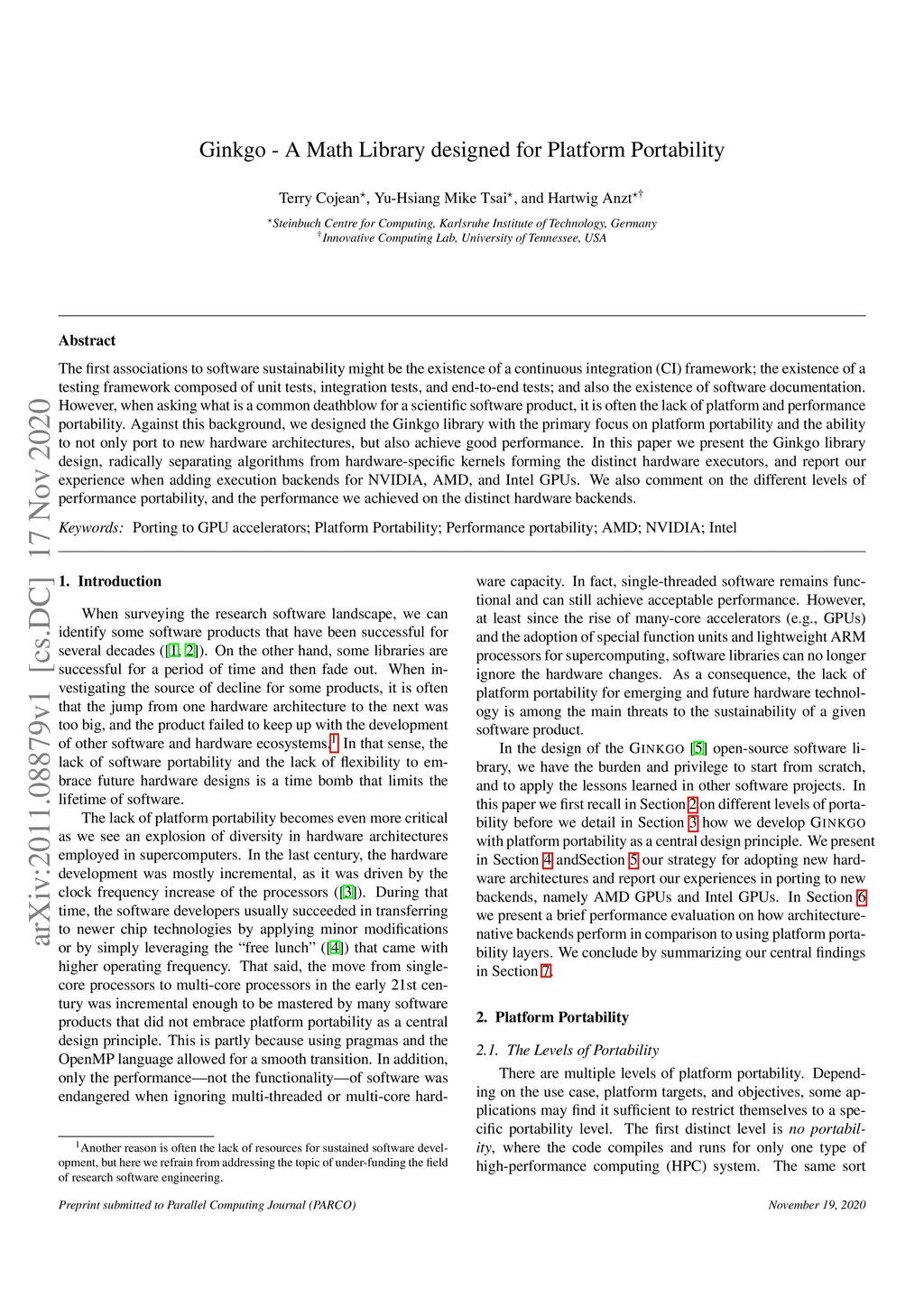 The first associations to software sustainability might be the existence of a continuous integration (CI) framework; the existence of a testing framework composed of unit tests, integration tests, and end-to-end tests; and also the existence of software documentation. However, when asking what is a common deathblow for a scientific software product, it is often the lack of platform and performance portability. Against this background, we designed the Ginkgo library with the primary focus on platform portability and the ability to not only port to new hardware architectures, but also achieve good performance. In this paper we present the Ginkgo library design, radically separating algorithms from hardware-specific kernels forming the distinct hardware executors, and report our experience when adding execution backends for NVIDIA, AMD, and Intel GPUs. We also comment on the different levels of performance portability, and the performance we achieved on the distinct hardware backends.