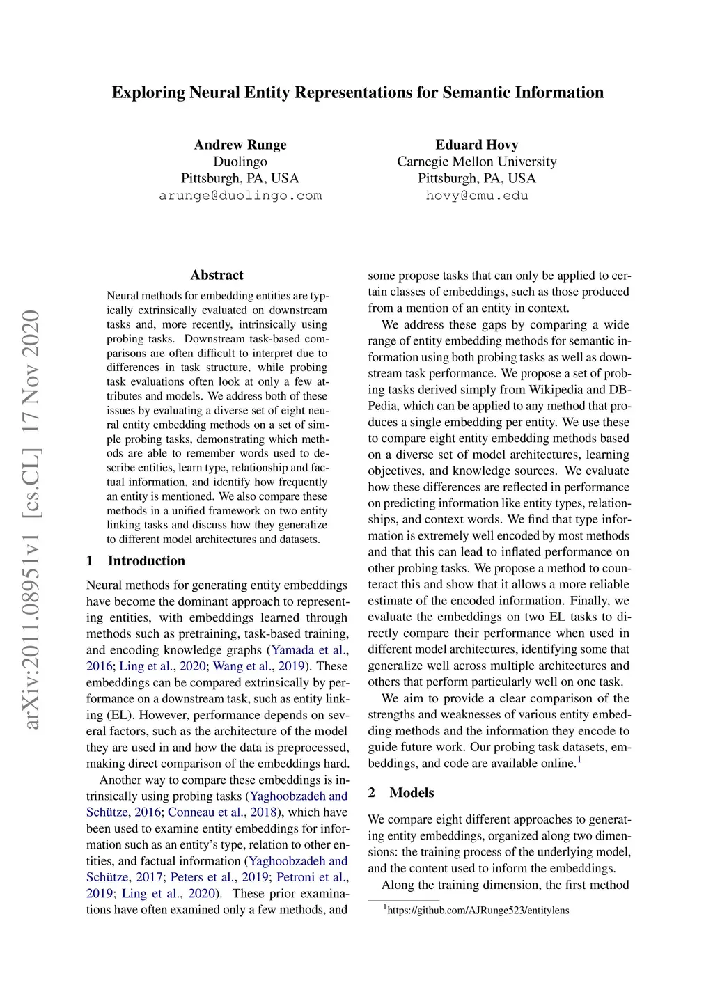 Exploring Neural Entity Representations for Semantic Information