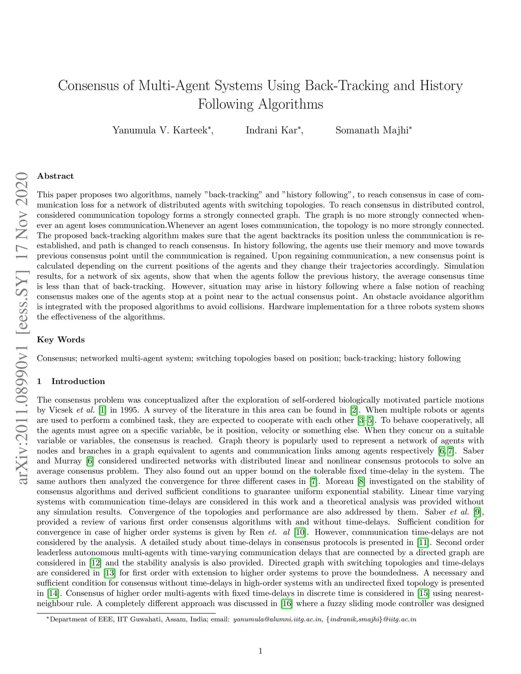 Consensus of Multi-Agent Systems Using Back-Tracking and History