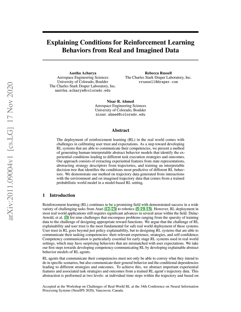 Explaining Conditions for Reinforcement Learning Behaviors from Real and