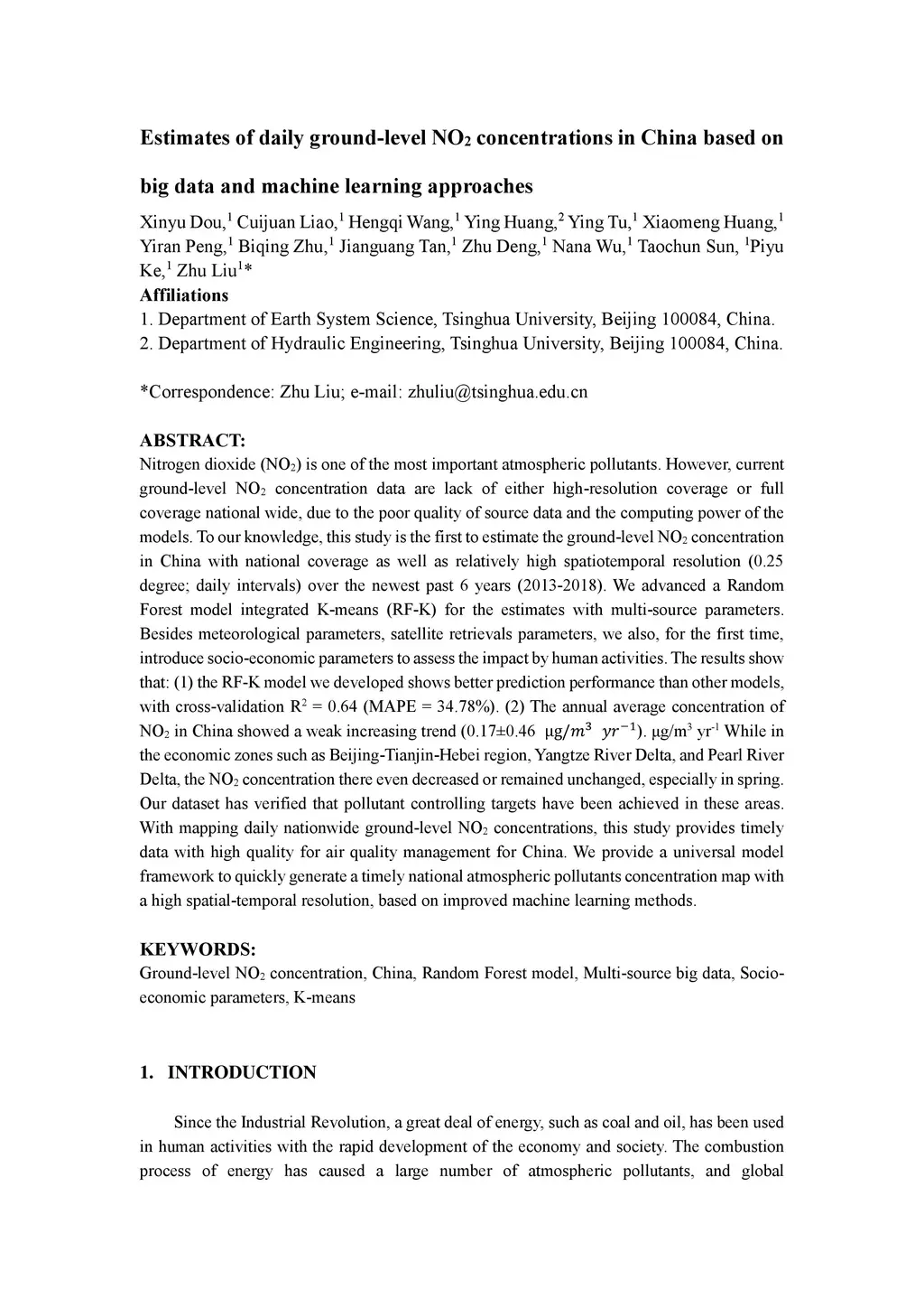Estimates of daily ground-level NO2 concentrations in China based on big