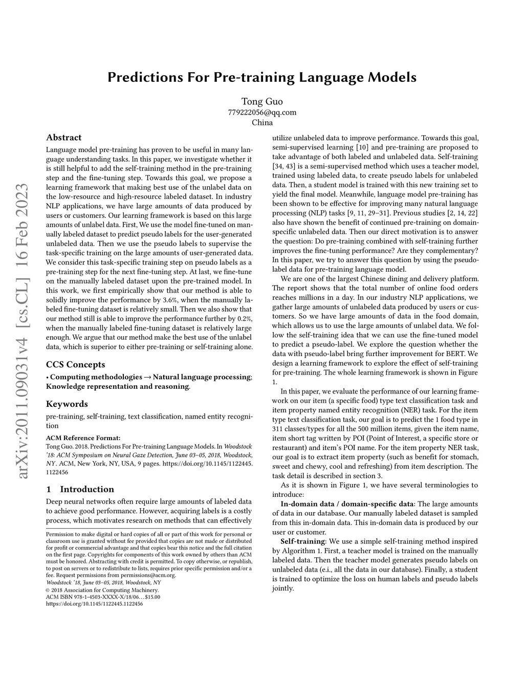 Language model pre-training has proven to be useful in many language understanding tasks. In this paper, we investigate whether it is still helpful to add the specific task's loss in pre-training step. In industry NLP applications, we have large amount of data produced by users. We use the fine-tuned model to give the user-generated unlabeled data a pseudo-label. Then we use the pseudo-label for the task-specific loss and masked language model loss to pre-train. The experiment shows that using the fine-tuned model's predictions for pseudo-labeled pre-training offers further gains in the downstream task. The improvement of our method is stable and remarkable.