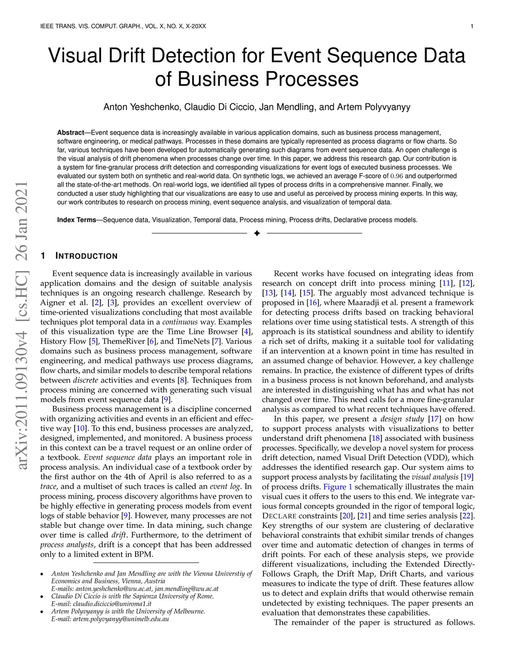 Visual Drift Detection for Sequence Data Analysis of Business Processes